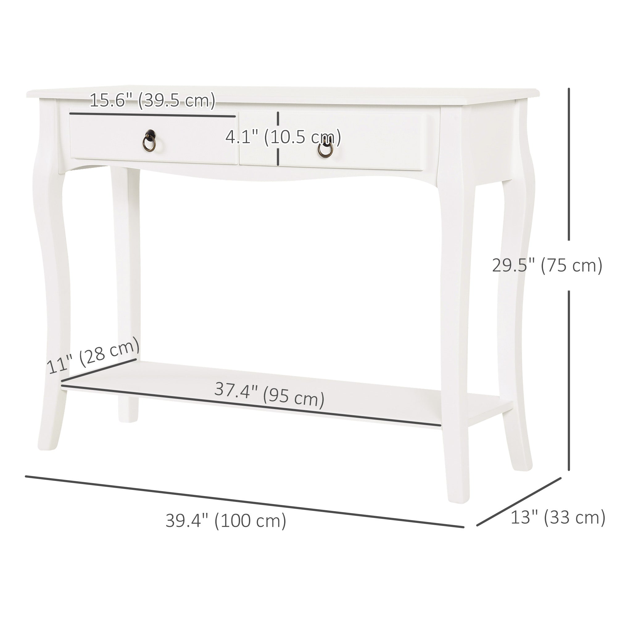 Practical storage: Featuring two sliding drawers, a lower shelf, and a wide top, this table provides functional space for your books, photos, plants, and decorative items.