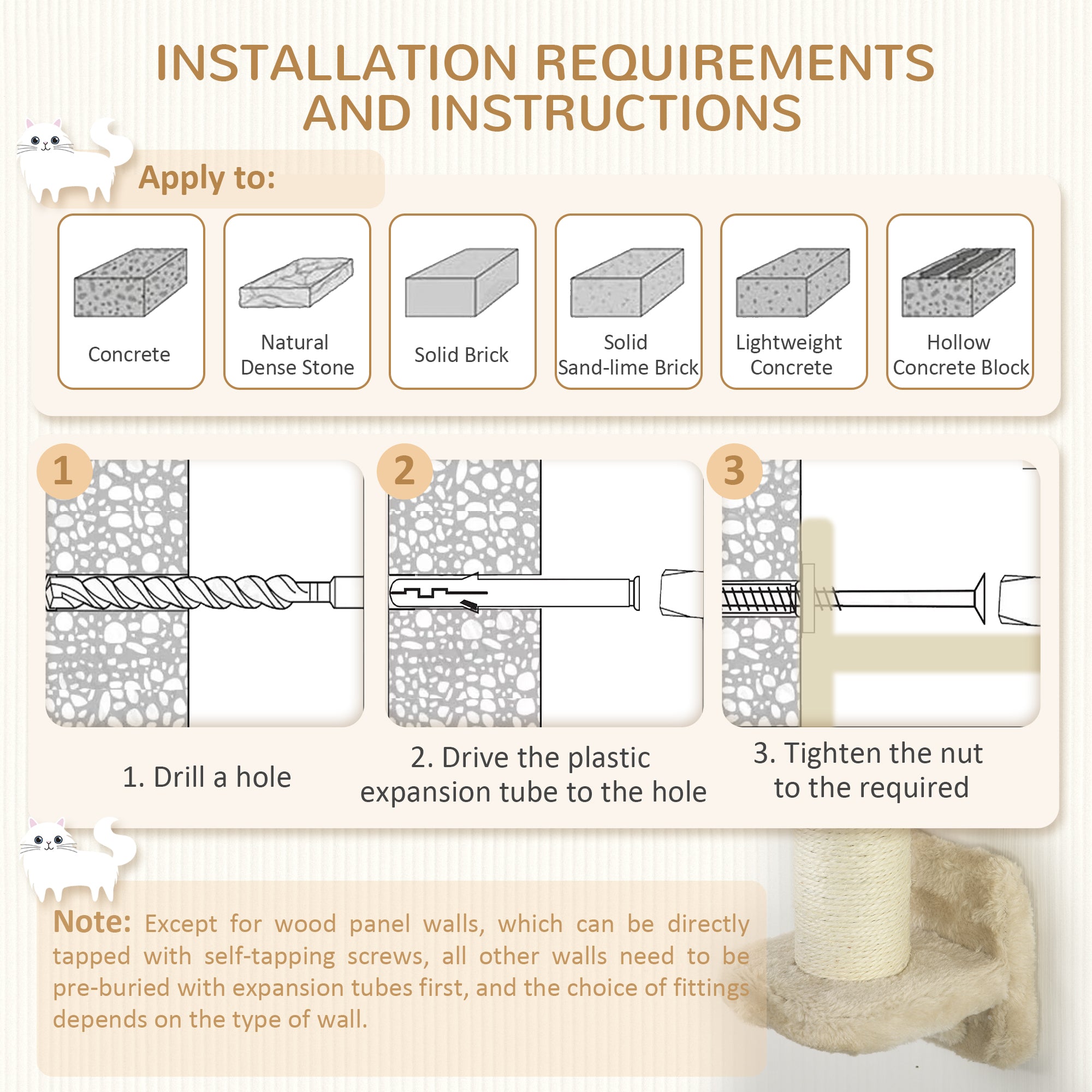 - Contains: 1 wall-mounted cat tree set and 1 instruction manual