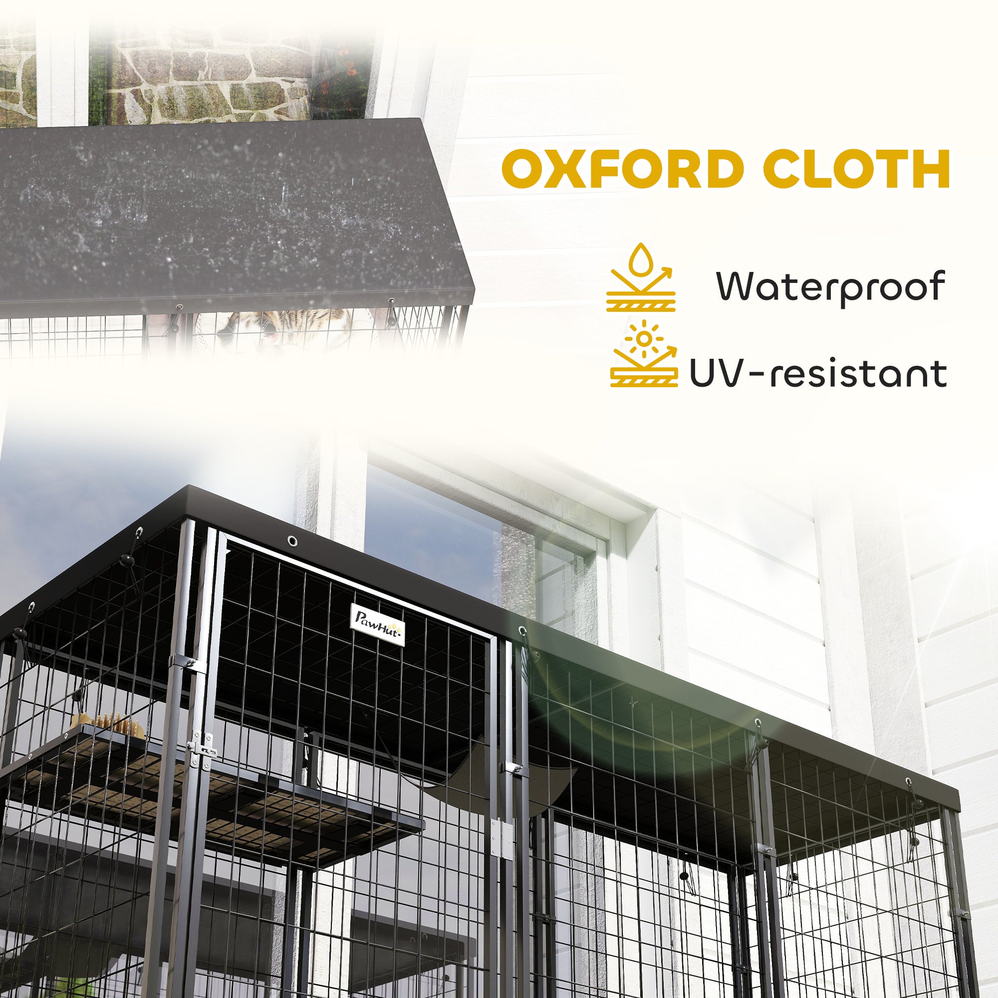 Catio Outdoor Cat Enclosure – Black Steel Cat Cage with Hammock, Perches and Waterproof Cover