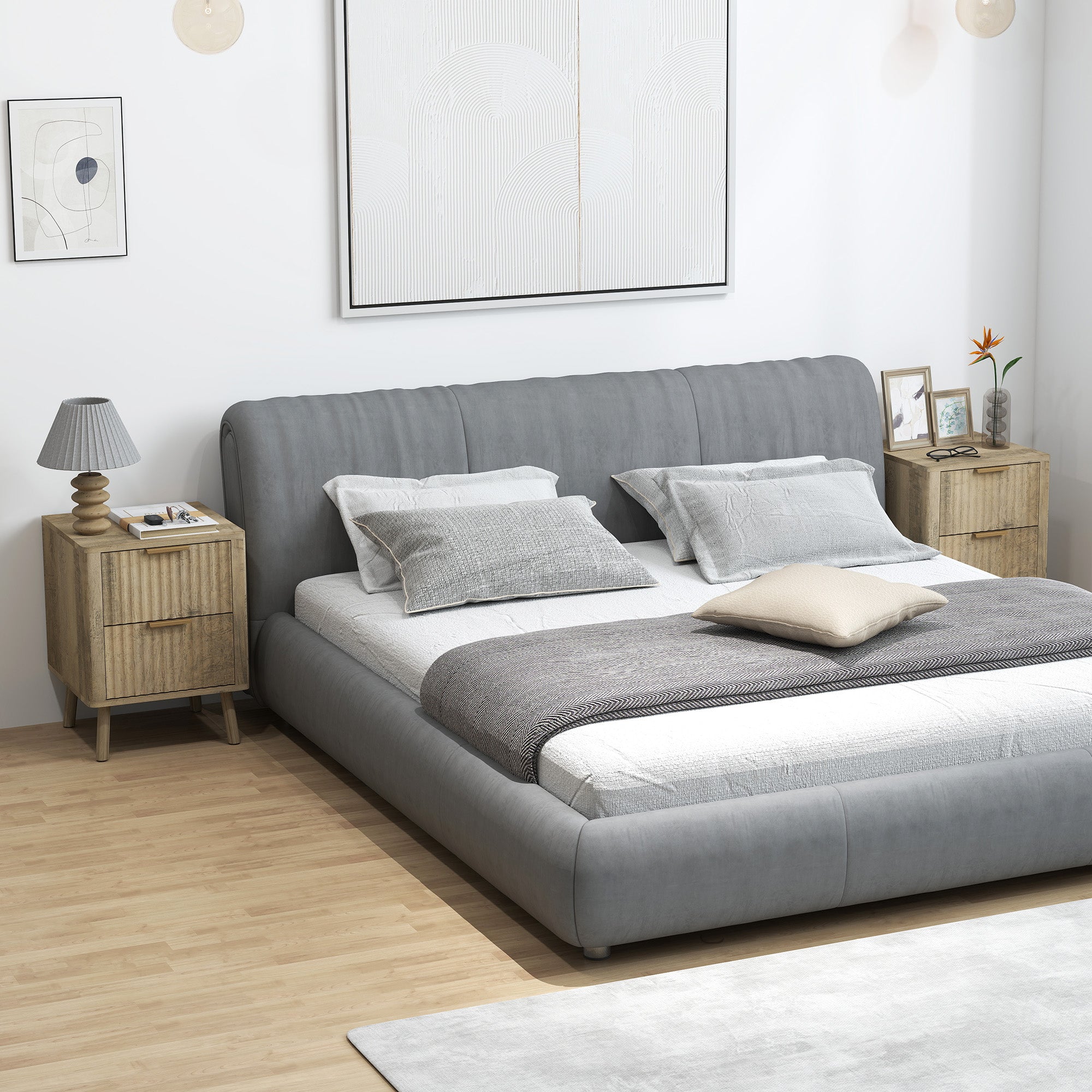 Elegance and refinement: These modern bedside tables are distinguished by their fluted drawers and golden handles, bringing a sophisticated and chic touch to your bedroom.