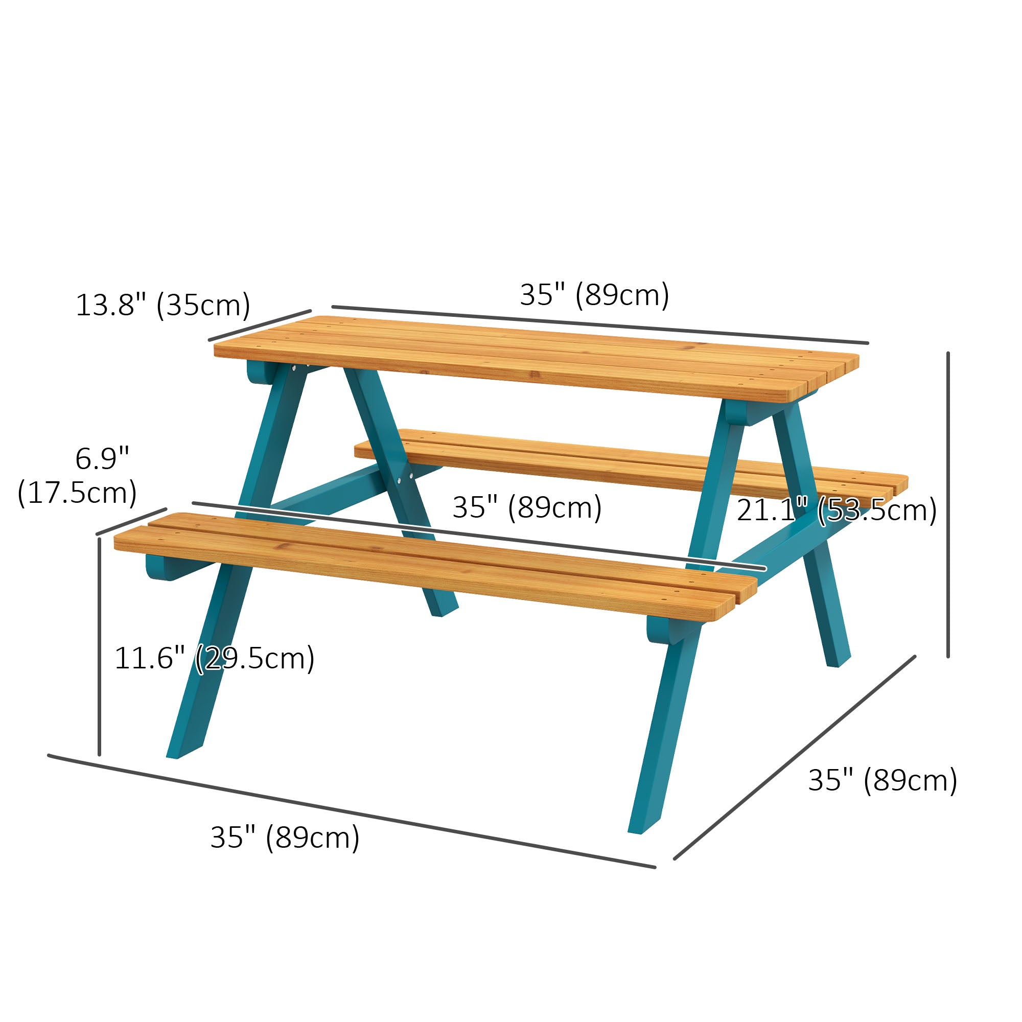 Kids Picnic Table Set - Built-in Natural Wood Benches