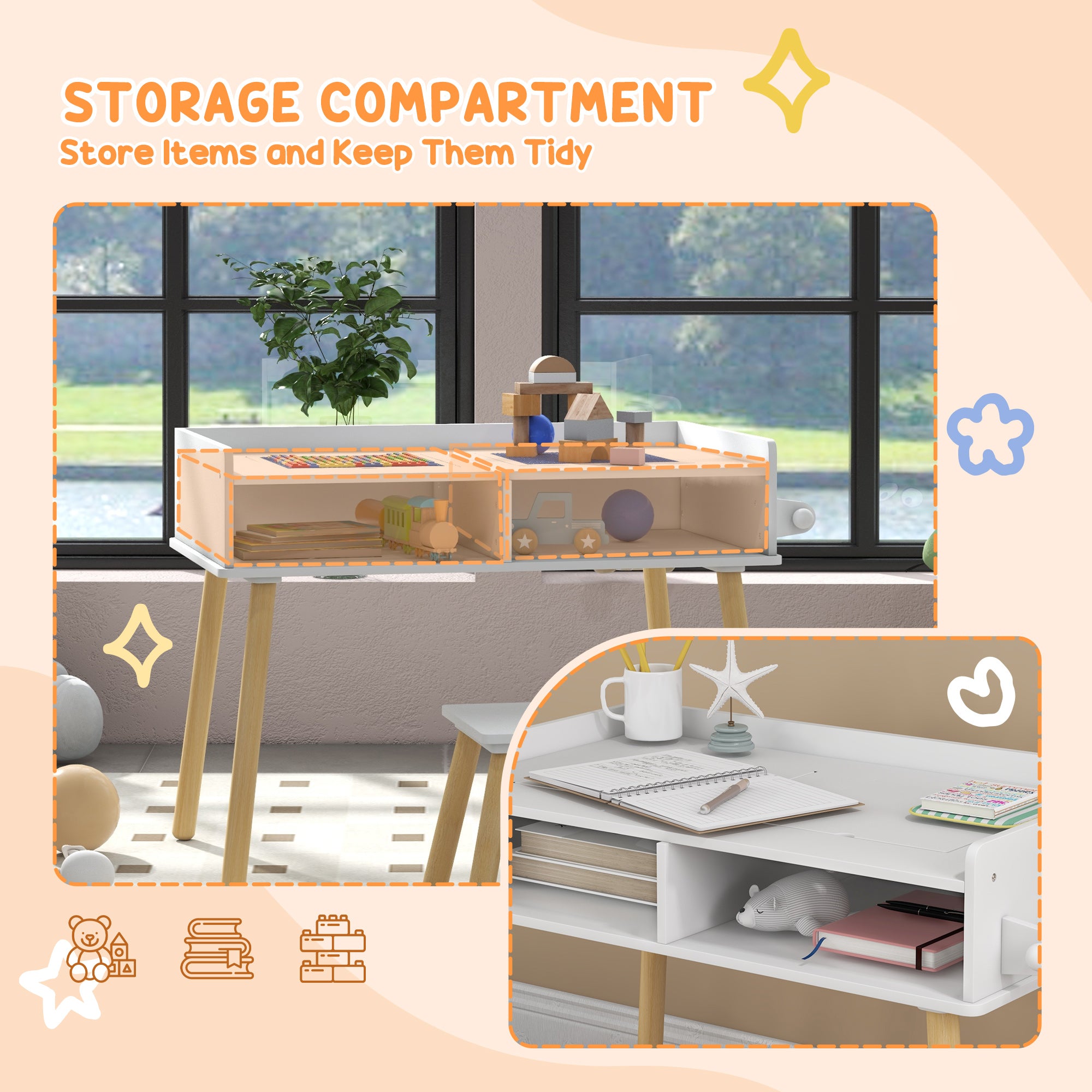Sturdy and Safe: Crafted from MDF and pine wood, this set guarantees stability and durability. Rounded corners ensure the safety of little ones, while non-toxic materials provide peace of mind for parents.