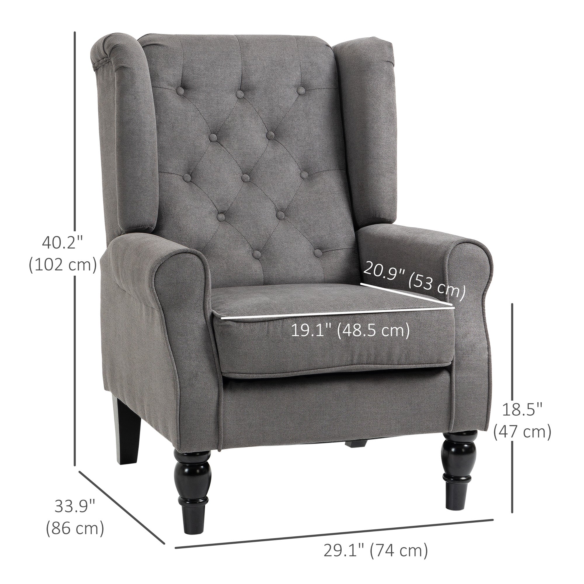 Bring style and character to your home with this modern accent chair. Its high tufted back and rolled armrests add a touch of timeless elegance, ideal for a living room, bedroom, office, or meeting room.