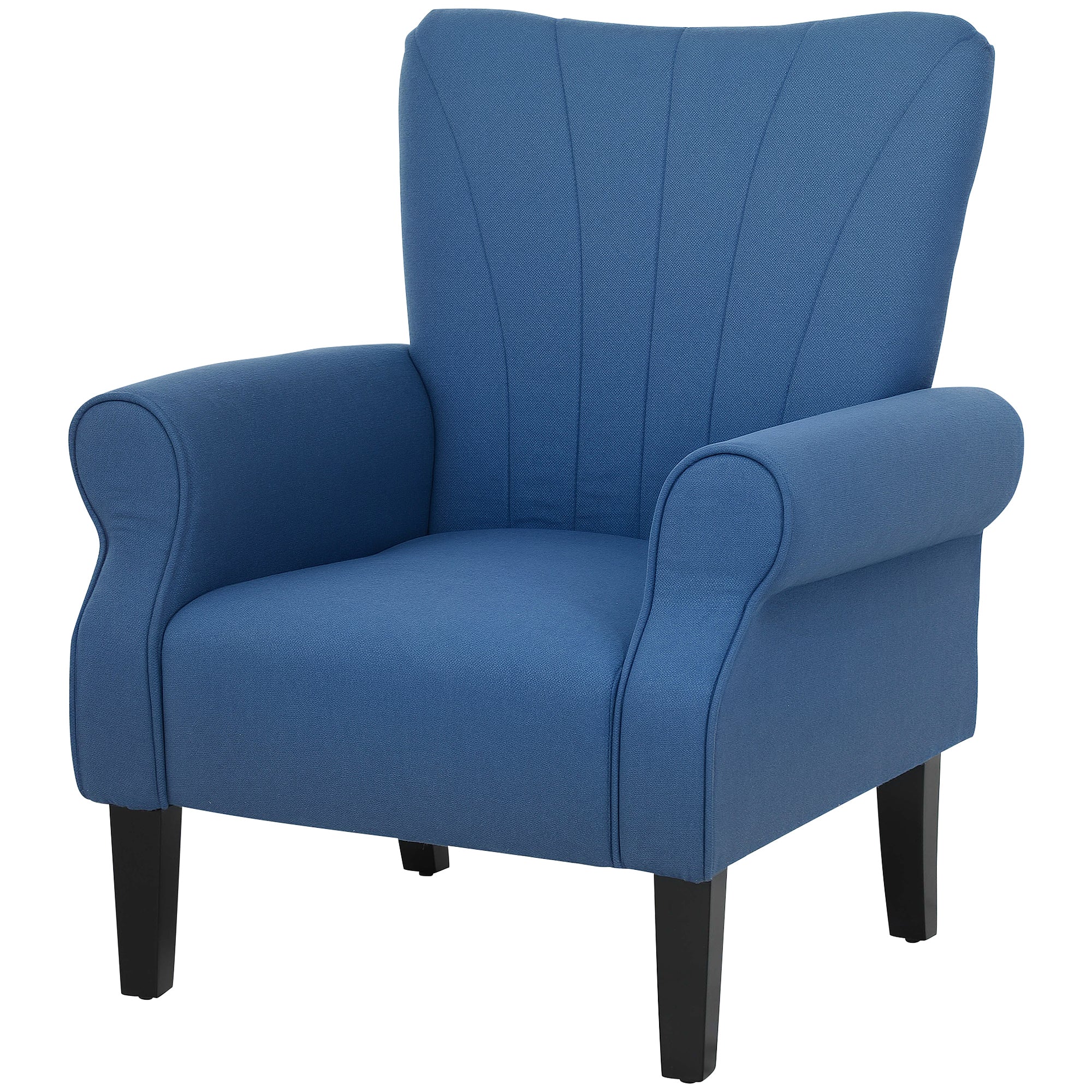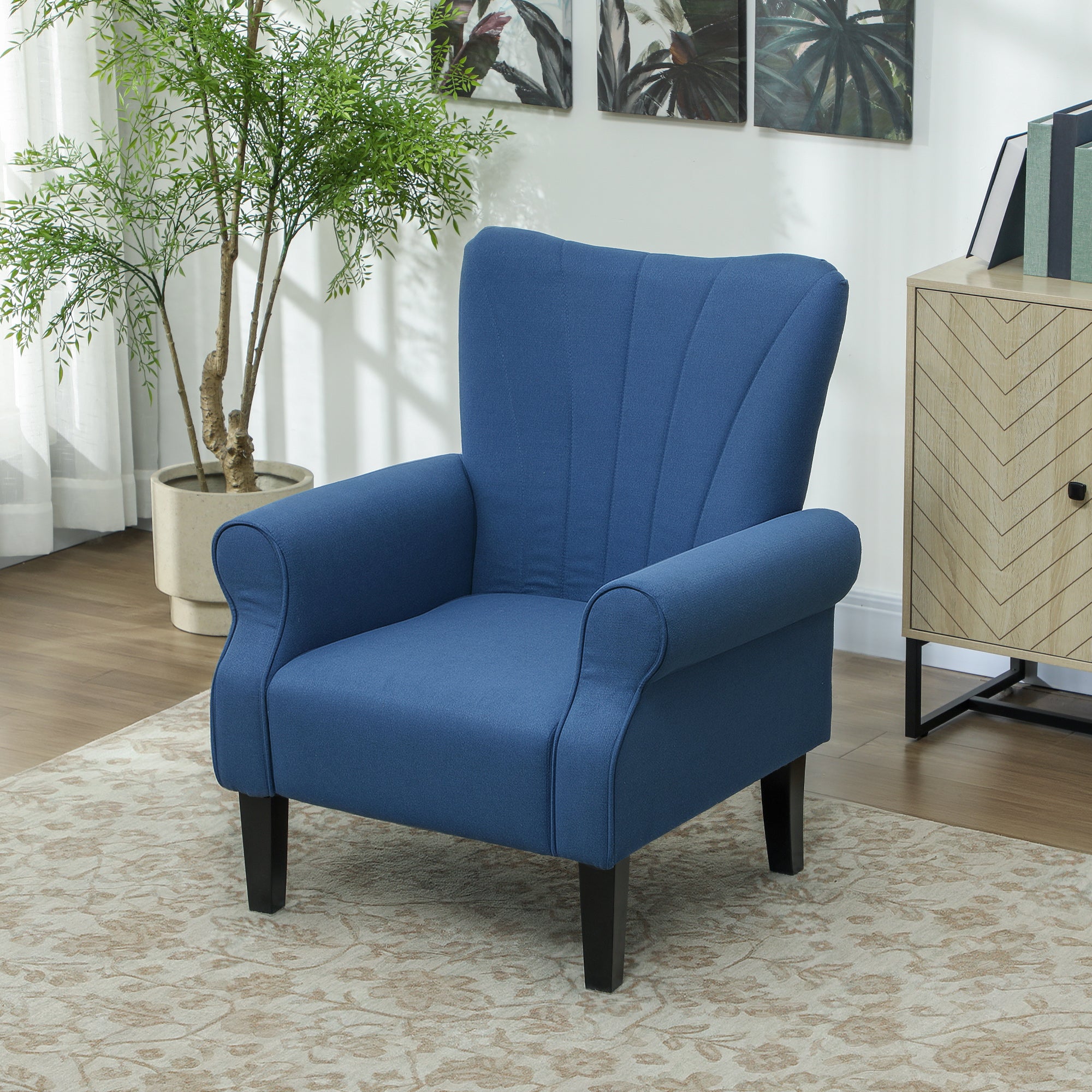 With its rolled armrests and deep stitching on the back, this armchair evokes timeless charm. Its linen-feel fabric upholstery adds a chic look and blends perfectly into both modern and classic interiors.