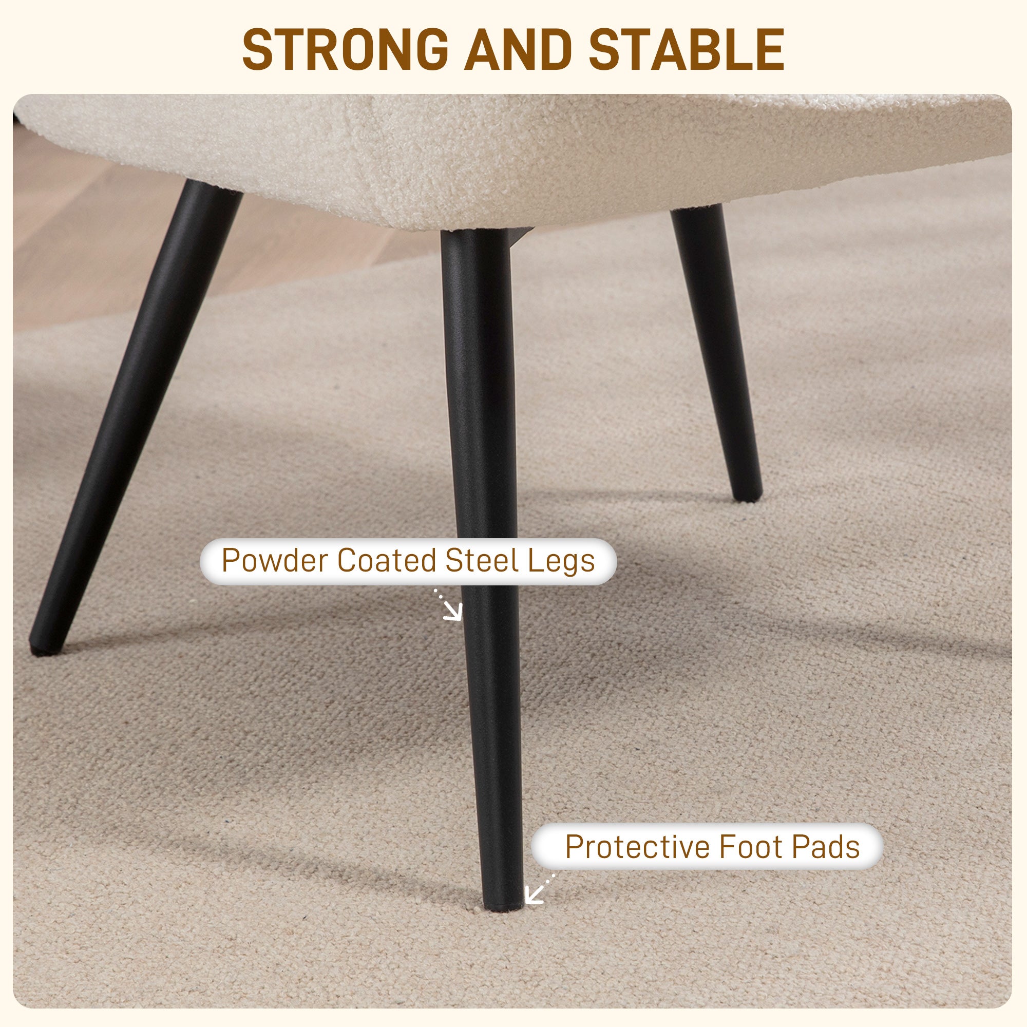- Materials: Sherpa (100% polyester), foam, steel