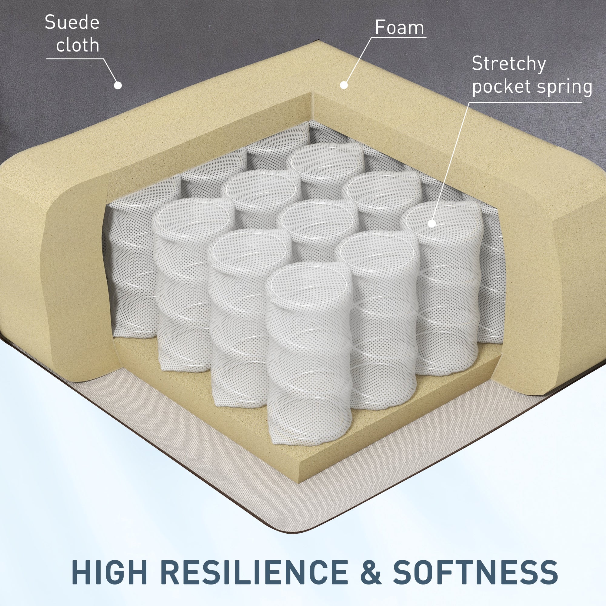 Its soft and breathable faux suede upholstery, high-density foam seat cushion with integrated springs, and doll cotton-filled backrest ensure a soft and comfortable seat. Two practical side pockets allow you to store the remote control or your small accessories.