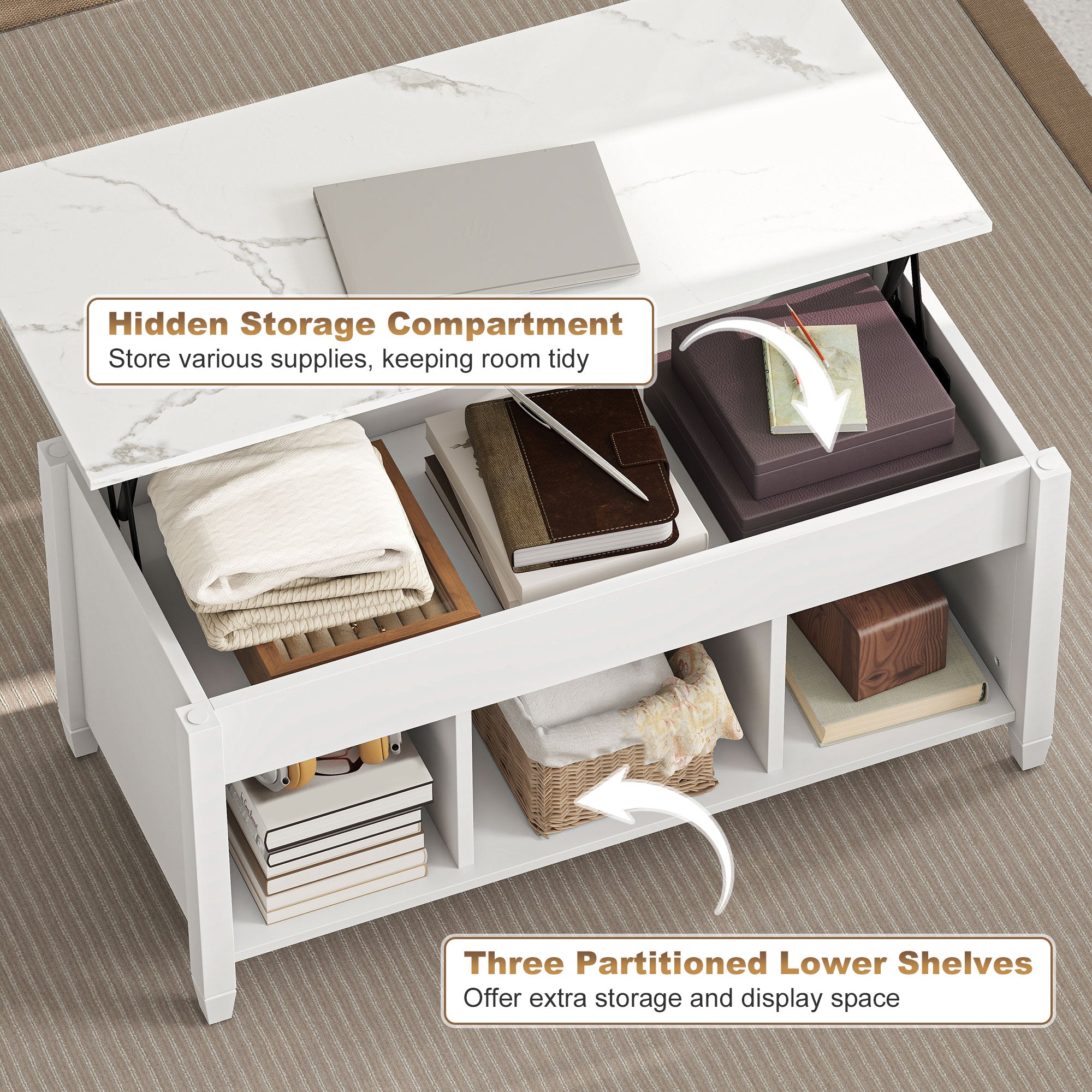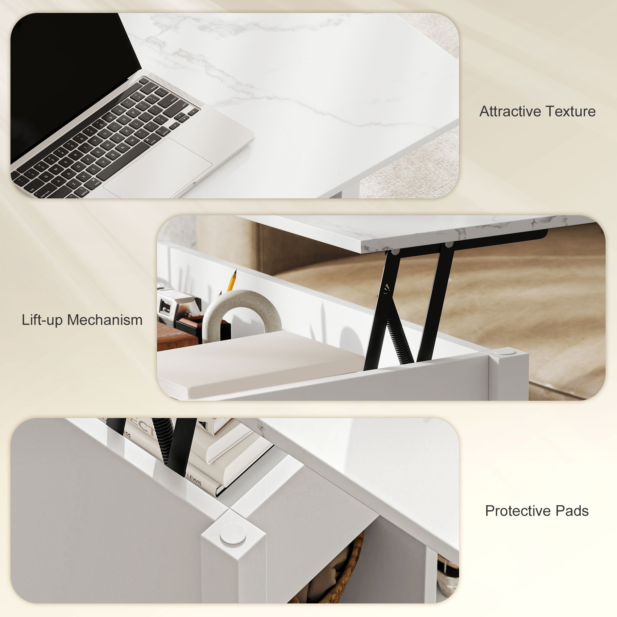 Comfort and design: This modern coffee table adds a chic and contemporary touch to your living room or office thanks to its white marble finish and clean design. Its lift-top creates a comfortable workspace, perfect for working from home, enjoying a meal, or organizing your daily activities.