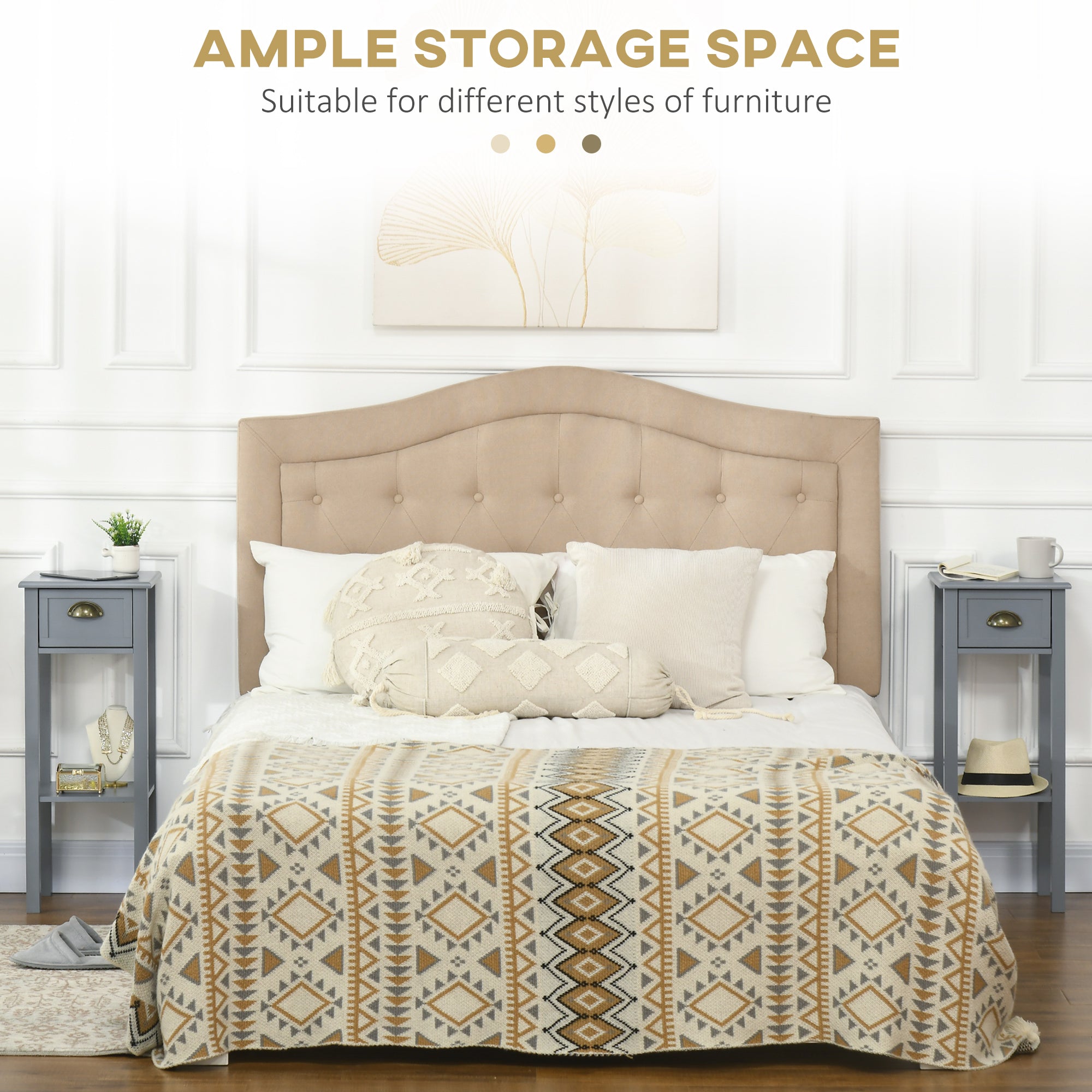 Functional surface The upper shelf offers an ideal space to display a plant, a photo frame or any other decorative element that will enhance your interior.