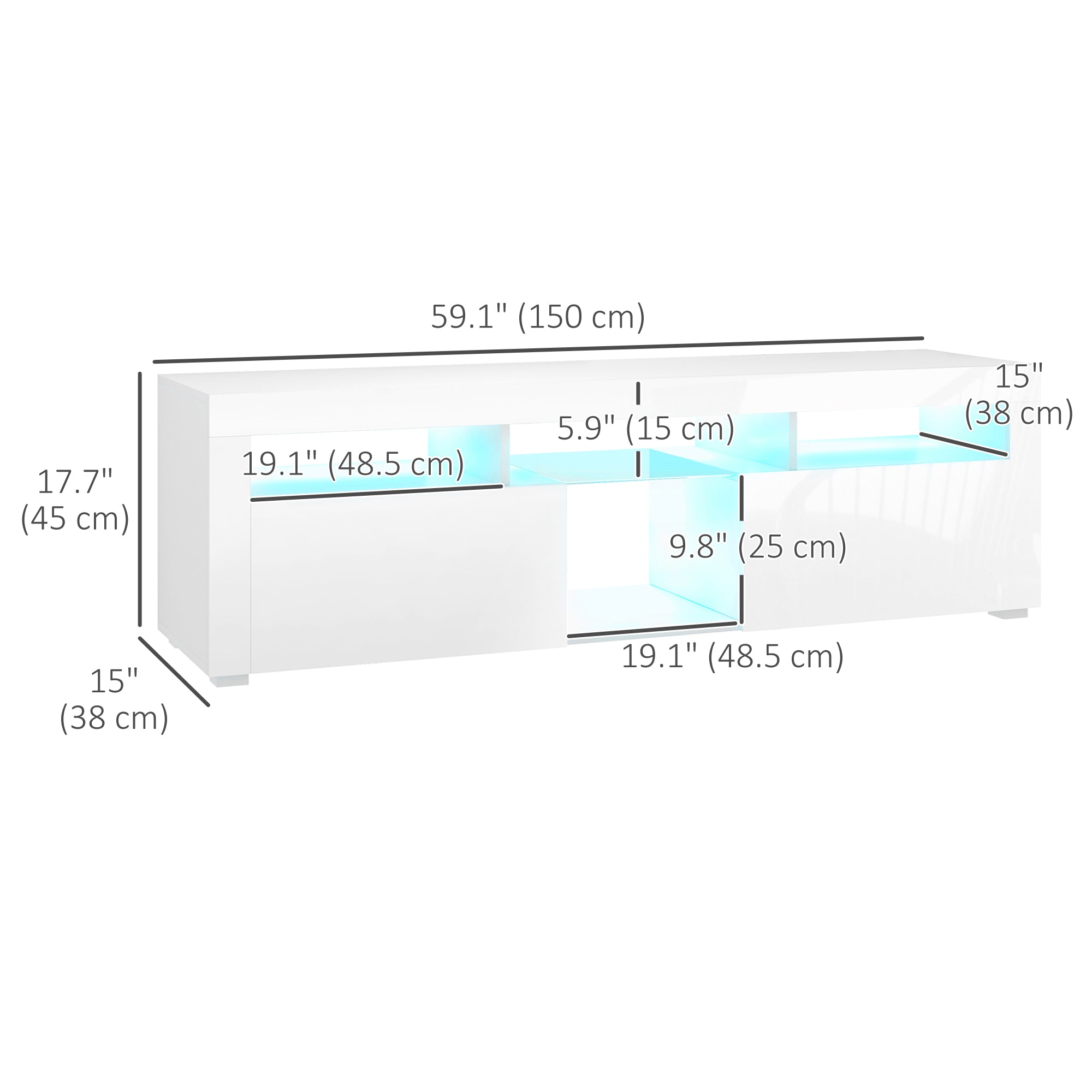 Glossy white TV stand with LED lighting – for TVs up to 55 inches
