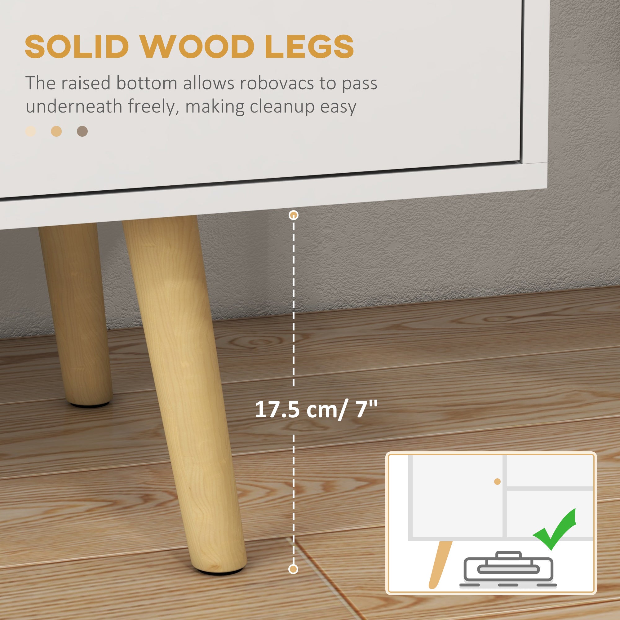 Strength and Durability: Constructed of sturdy particle board with solid wood legs, this TV stand ensures stability and longevity for everyday use.
