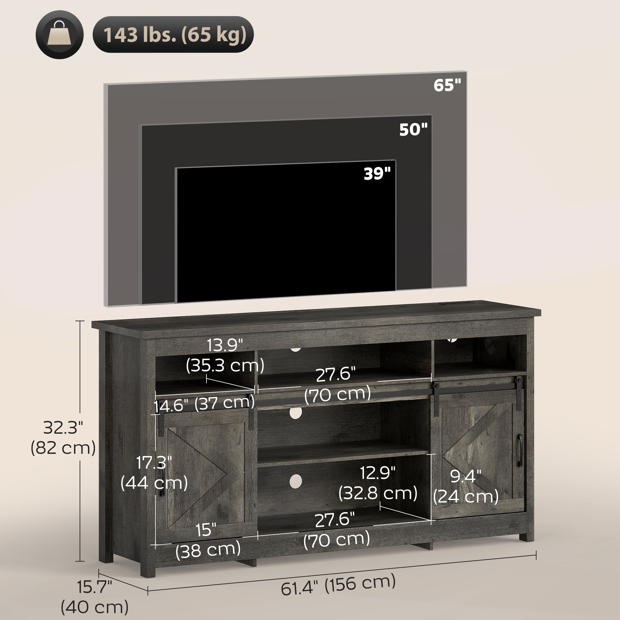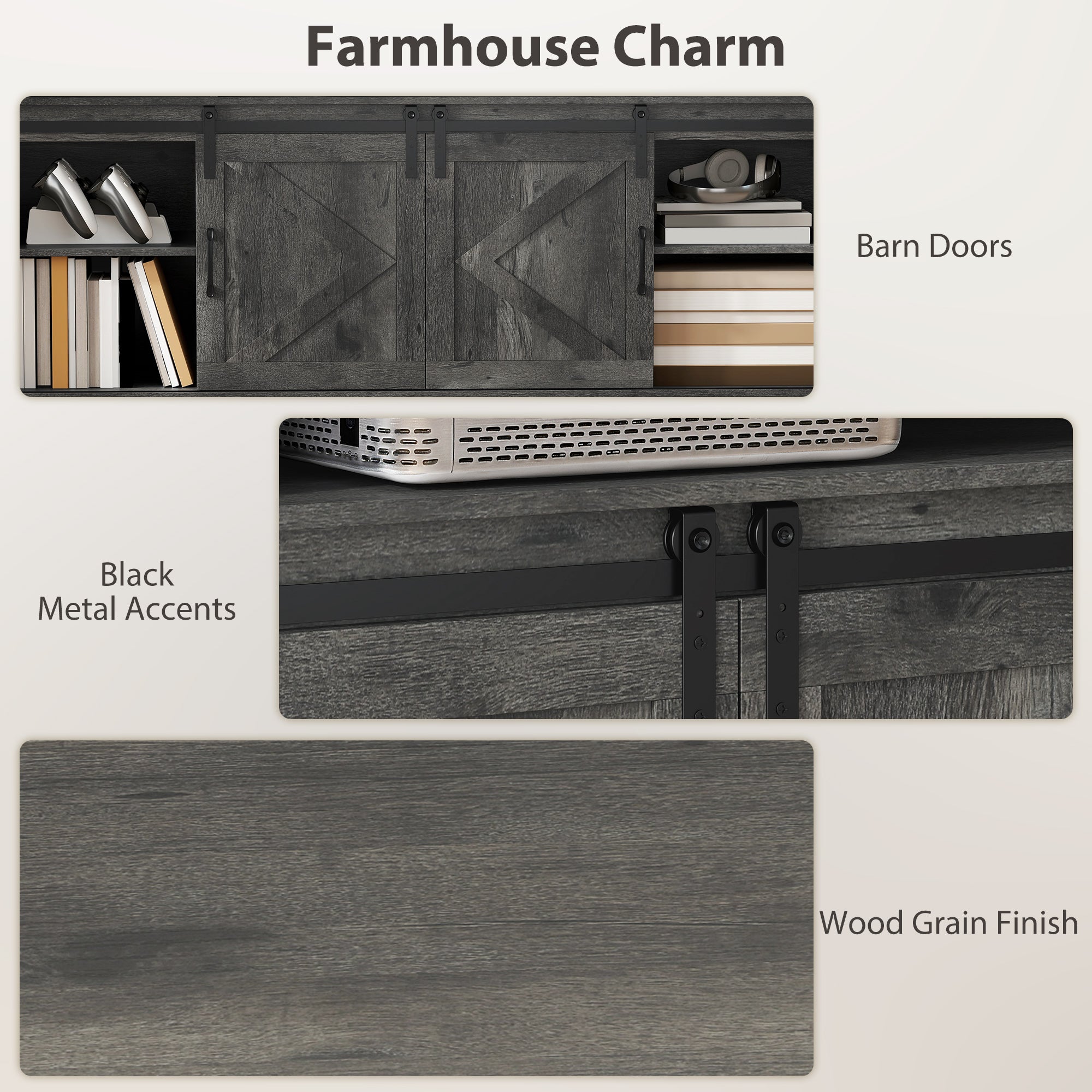 Rustic Dark Grey TV Stand - Large TV Stand for TVs up to 72 inches with Built-in Outlets and Sliding Doors