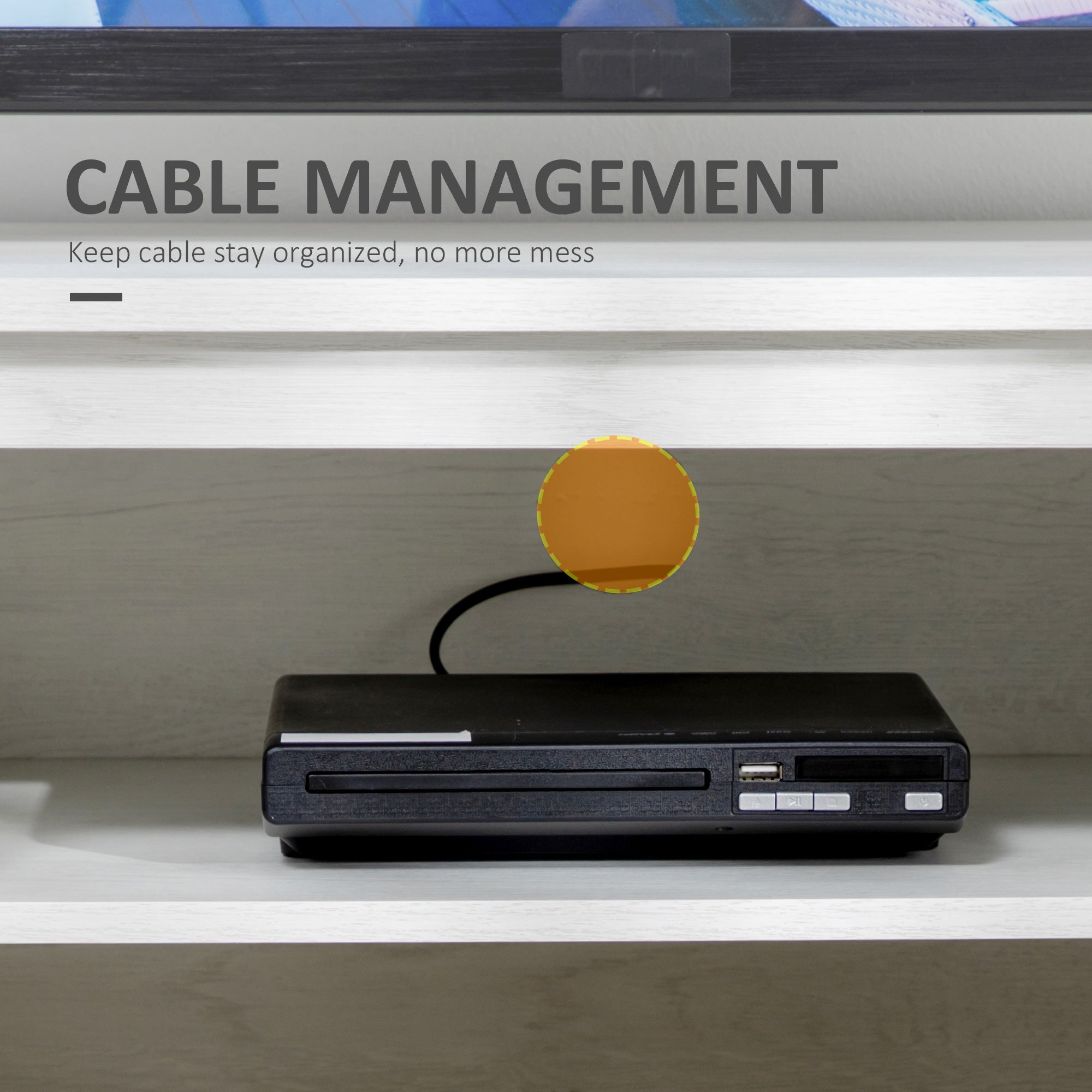 Ease of use: An integrated cable management conceals wires for a clean, tidy look. Plus, the anti-tip system on the back ensures secure wall mounting, ideal for families with children or pets.