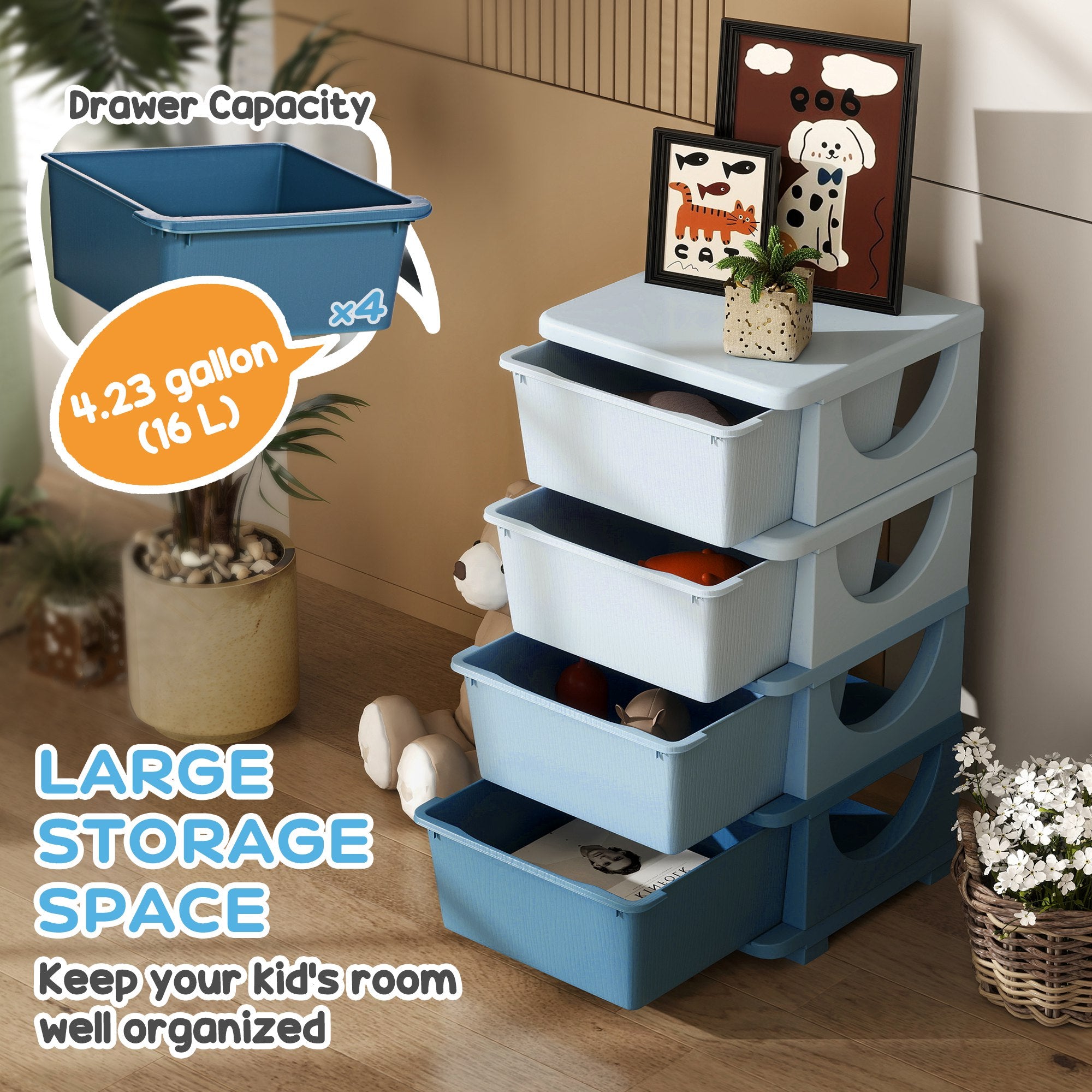 Kid-Friendly: With its ideal height and rounded edges, this organizer is perfectly safe for young children. The drawers pull out easily, allowing them to easily access their toys and actively participate in tidying up.