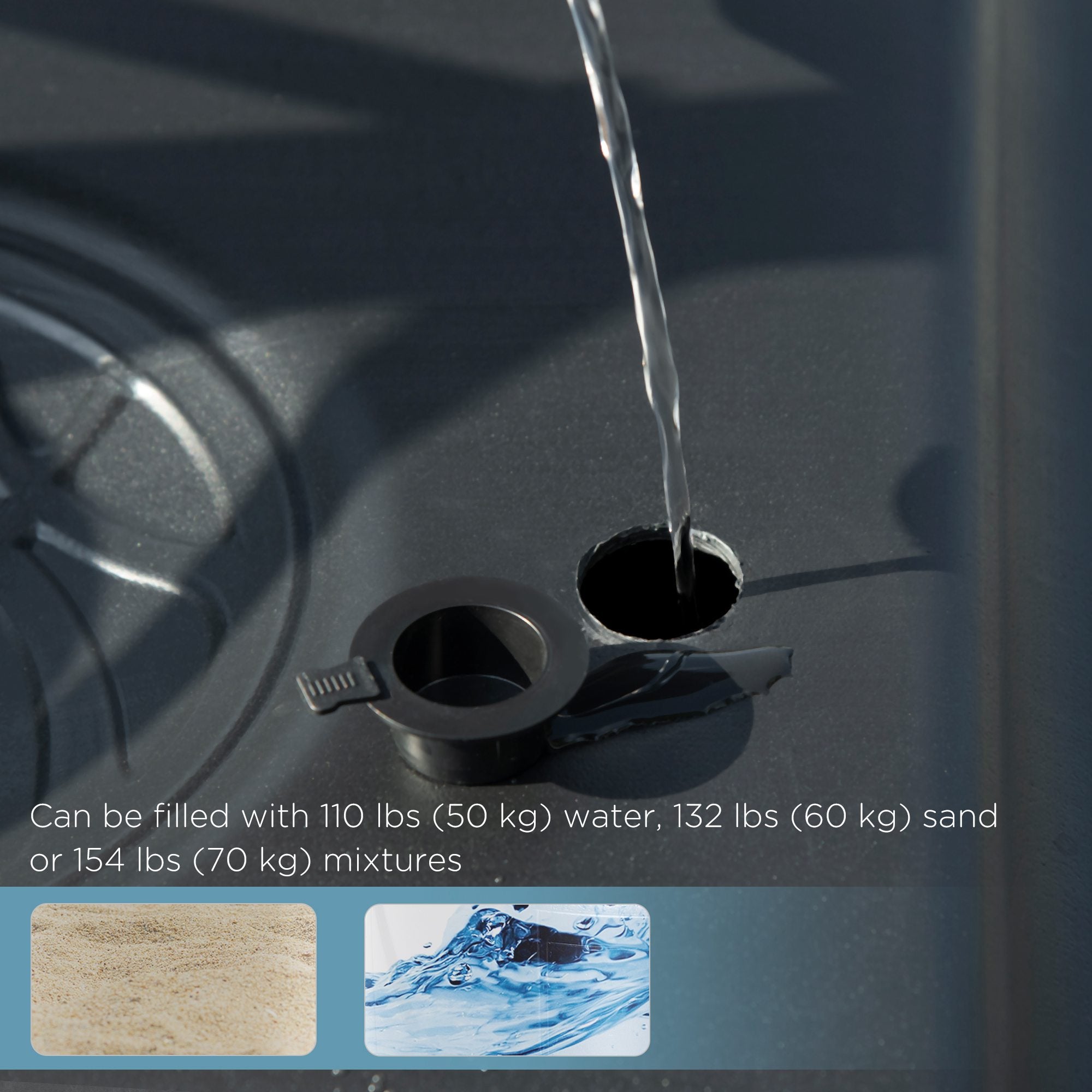 - Base capacity: 50 kg (110 lb) of water, 60 kg (132 lb) of sand or 70 kg (154 lb) of water and sand combined