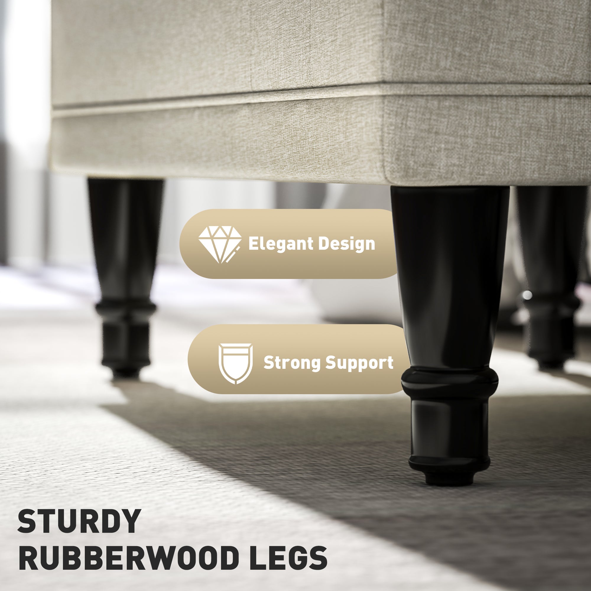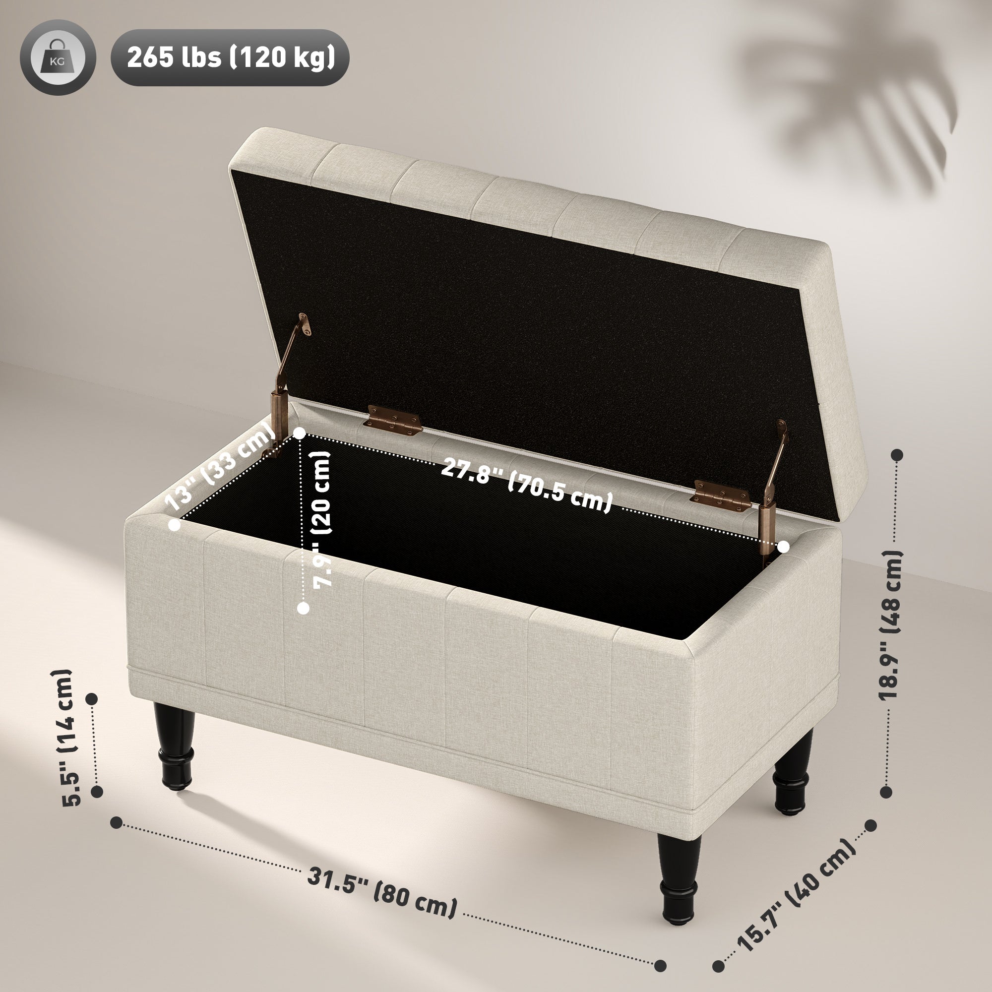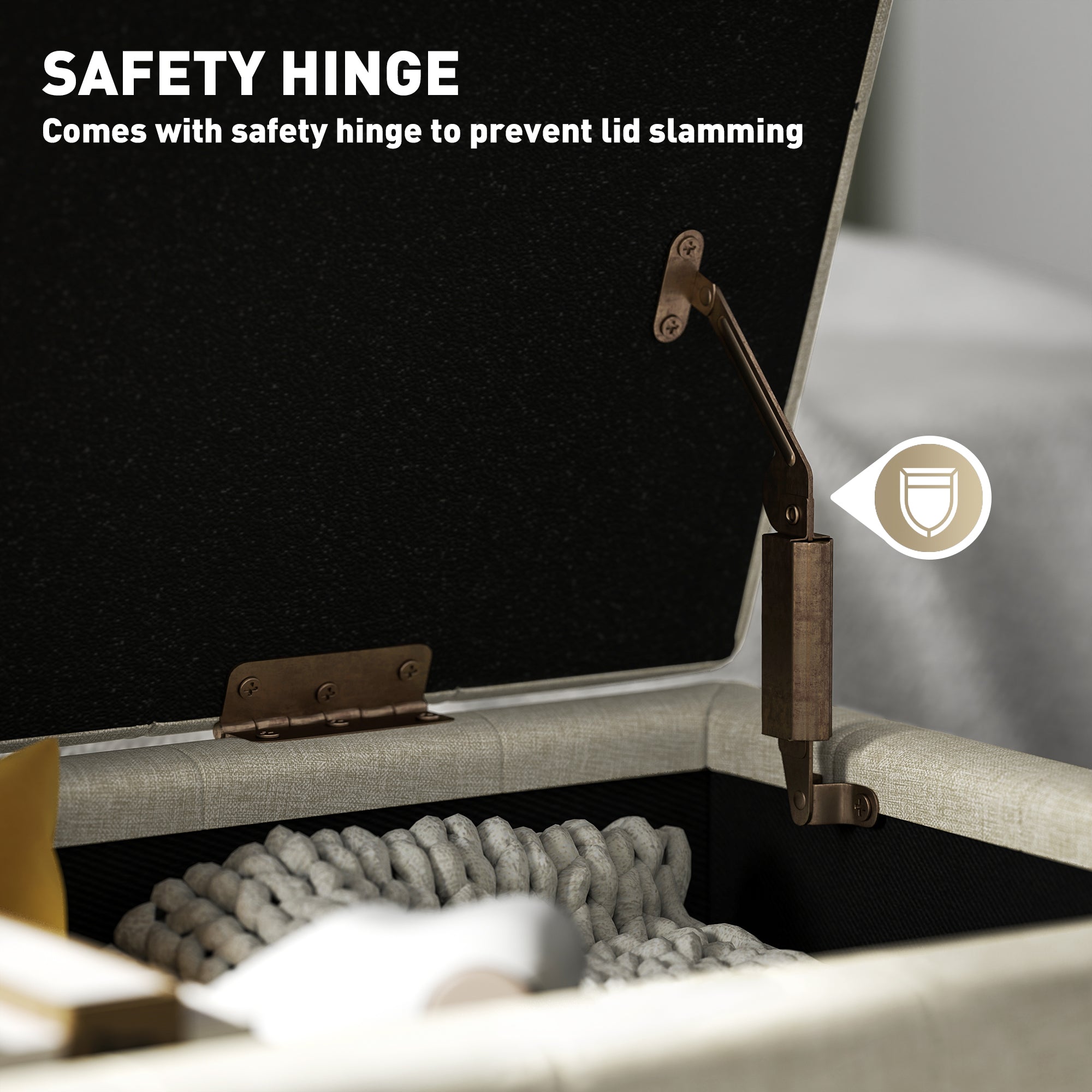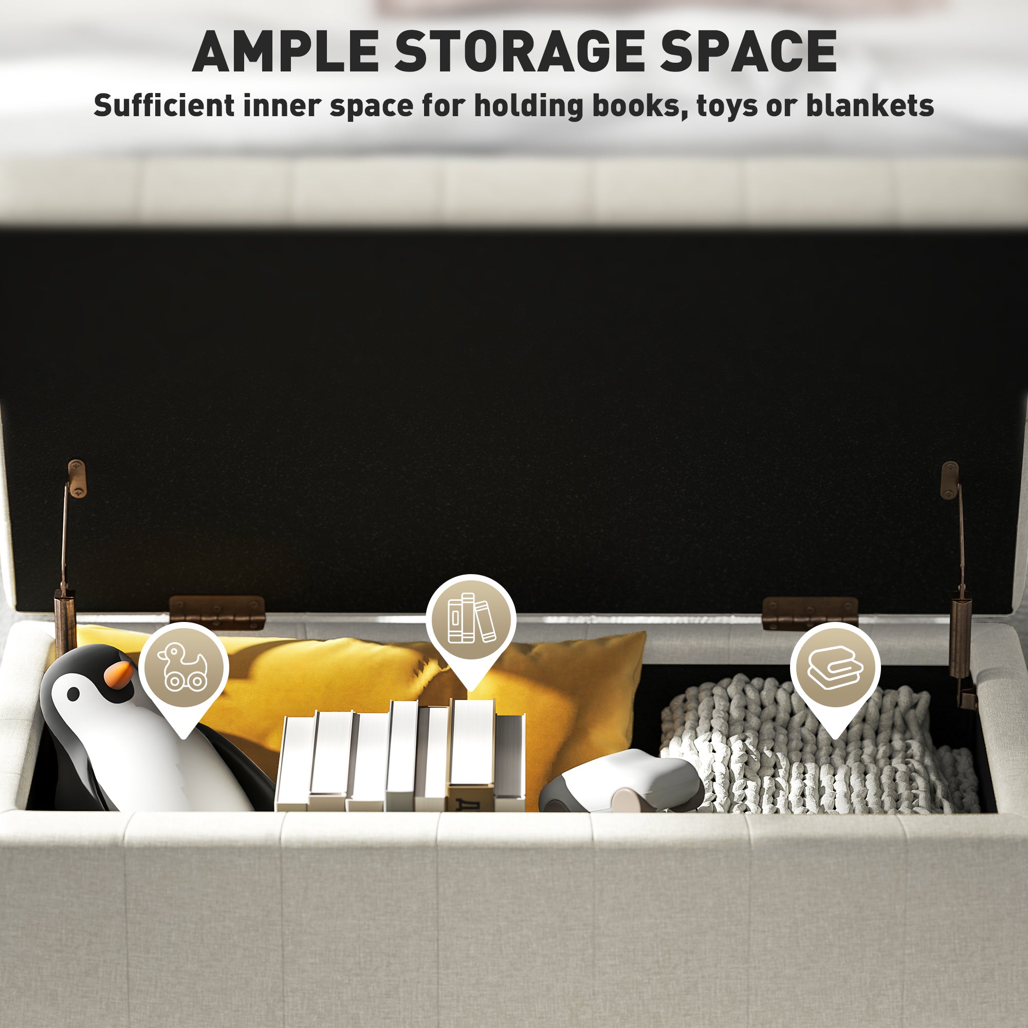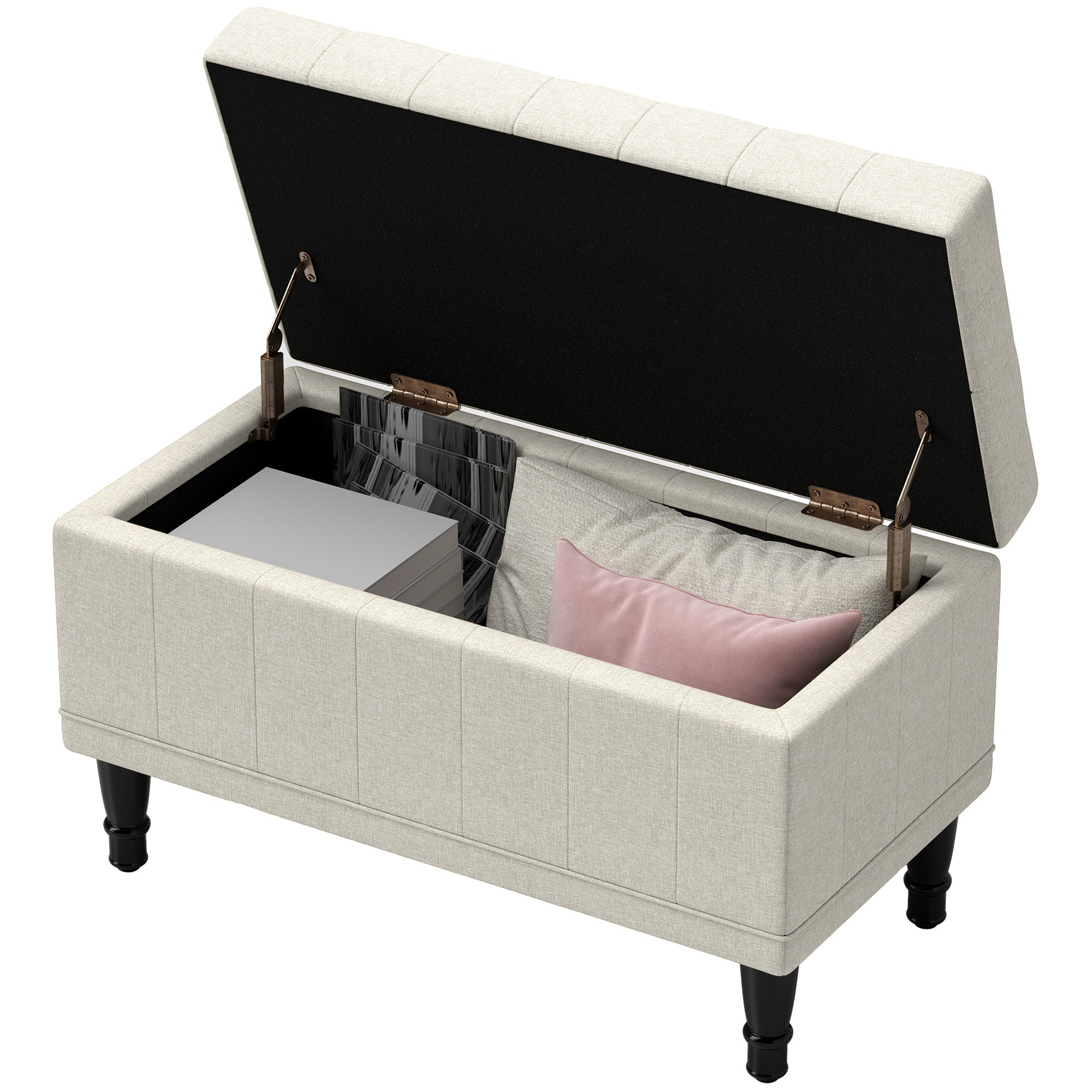 Beige Linen Look Fabric Storage Ottoman Bench – Elegance, Comfort & Practical Space