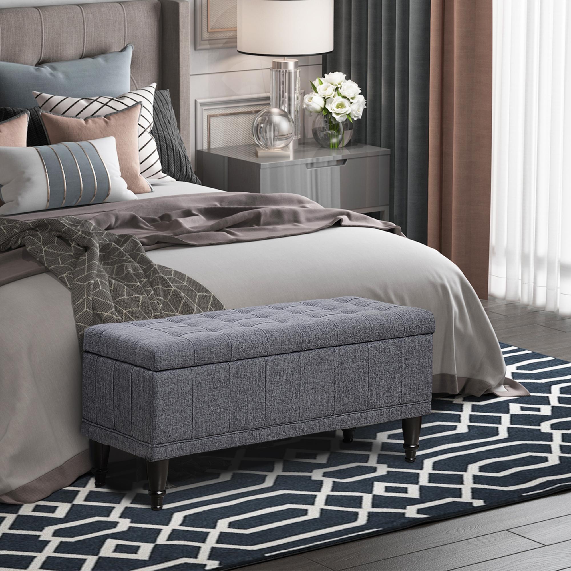 A piece of furniture that's both practical and refined, this ottoman bench with its linen-look fabric adds an elegant touch to your living room, bedroom, or entryway. Its dark gray hue and tufted design give it a chic, timeless look, perfect for enhancing any living space.