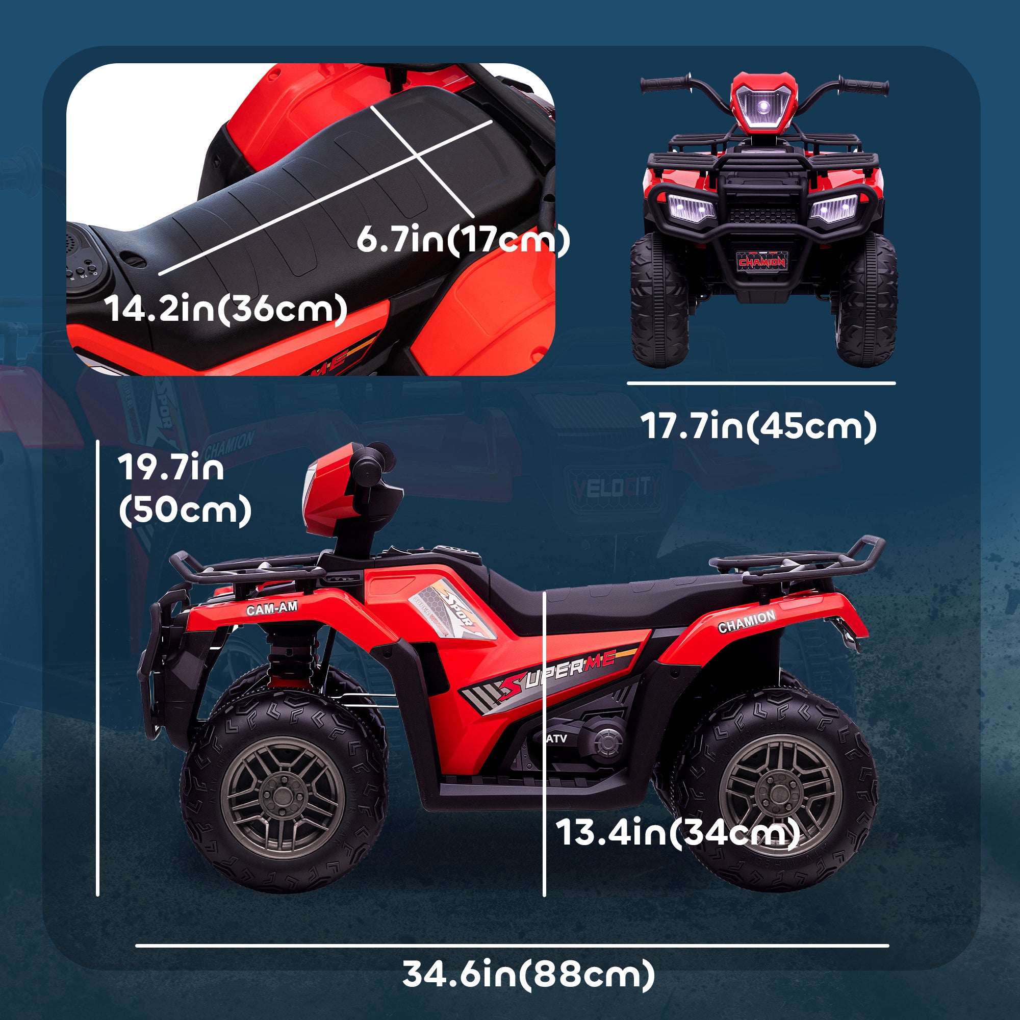 Comfort and safety guaranteed: The ergonomic seat and sturdy handles ensure a stable and comfortable position. Its thick wheels ensure optimal traction on various types of terrain, while the front headlights increase visibility, even at night.