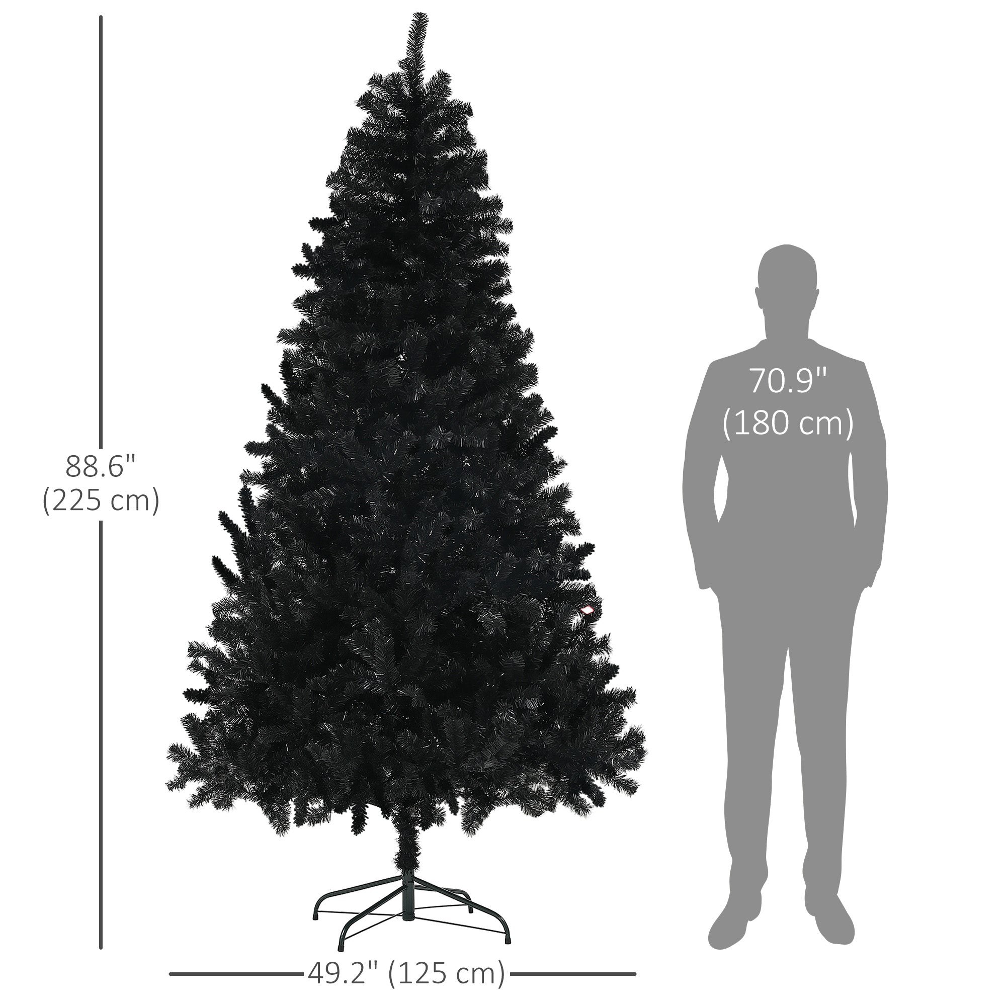 Unique Festive Atmosphere: This 7.5-foot black flocked artificial Christmas tree brings a unique and elegant atmosphere to your holidays. Its dark hue allows it to fit into a traditional Christmas decoration as well as the heart of a Halloween setting.