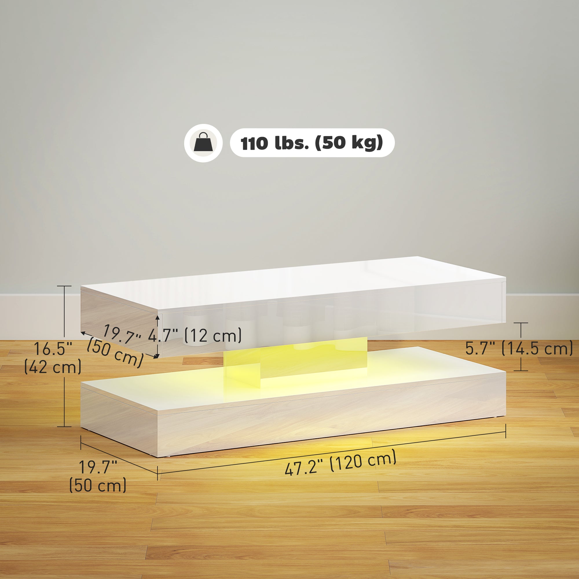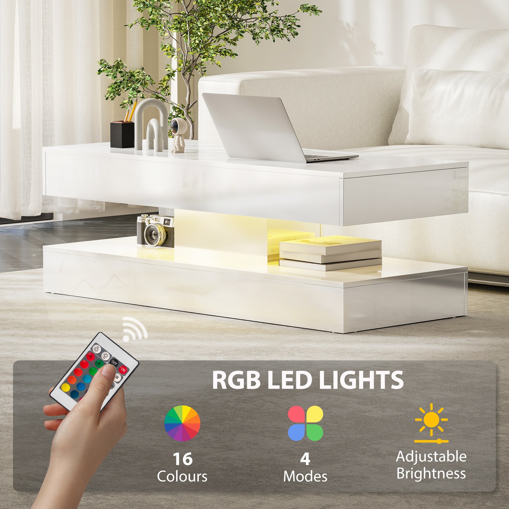 Modern Coffee Table with RGB LED and Storage – Glossy White