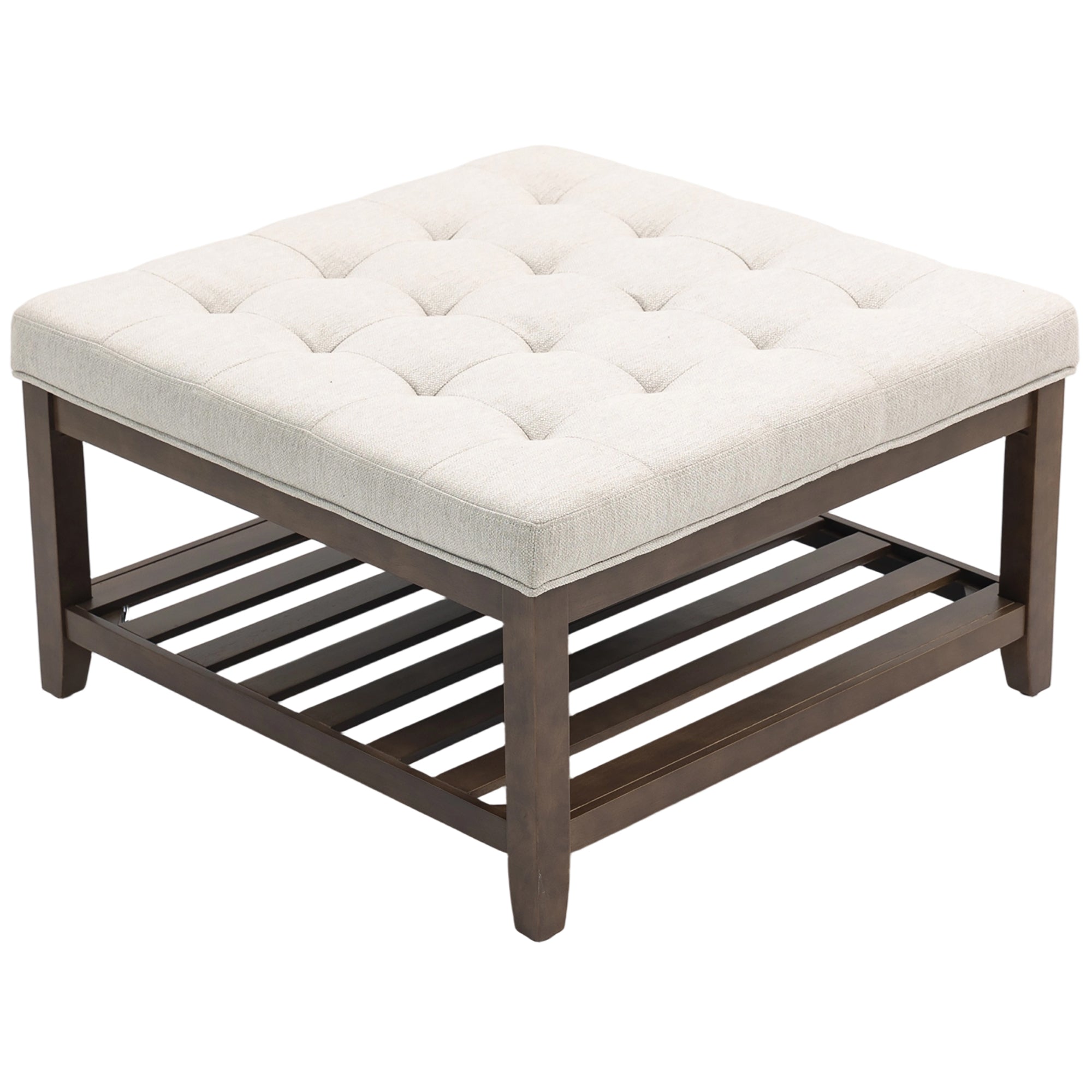 Comfort and design: Bring balance and conviviality to your living room with this practical and elegant ottoman coffee table. Its timeless tufted surface and beige finish blend perfectly with any type of decor, creating a welcoming and warm space.
