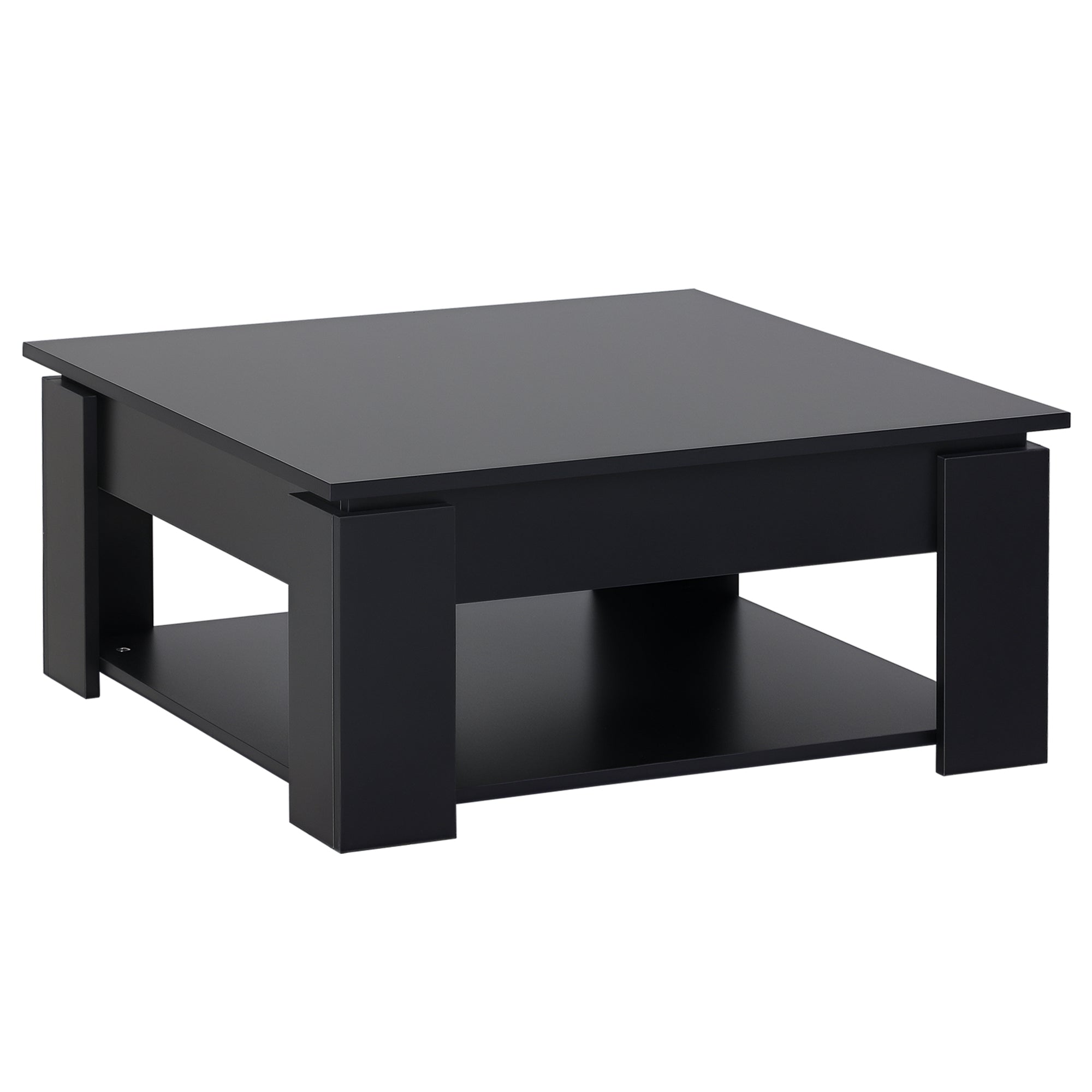 Faux Wood Coffee Table with Two-Tier Storage - Black