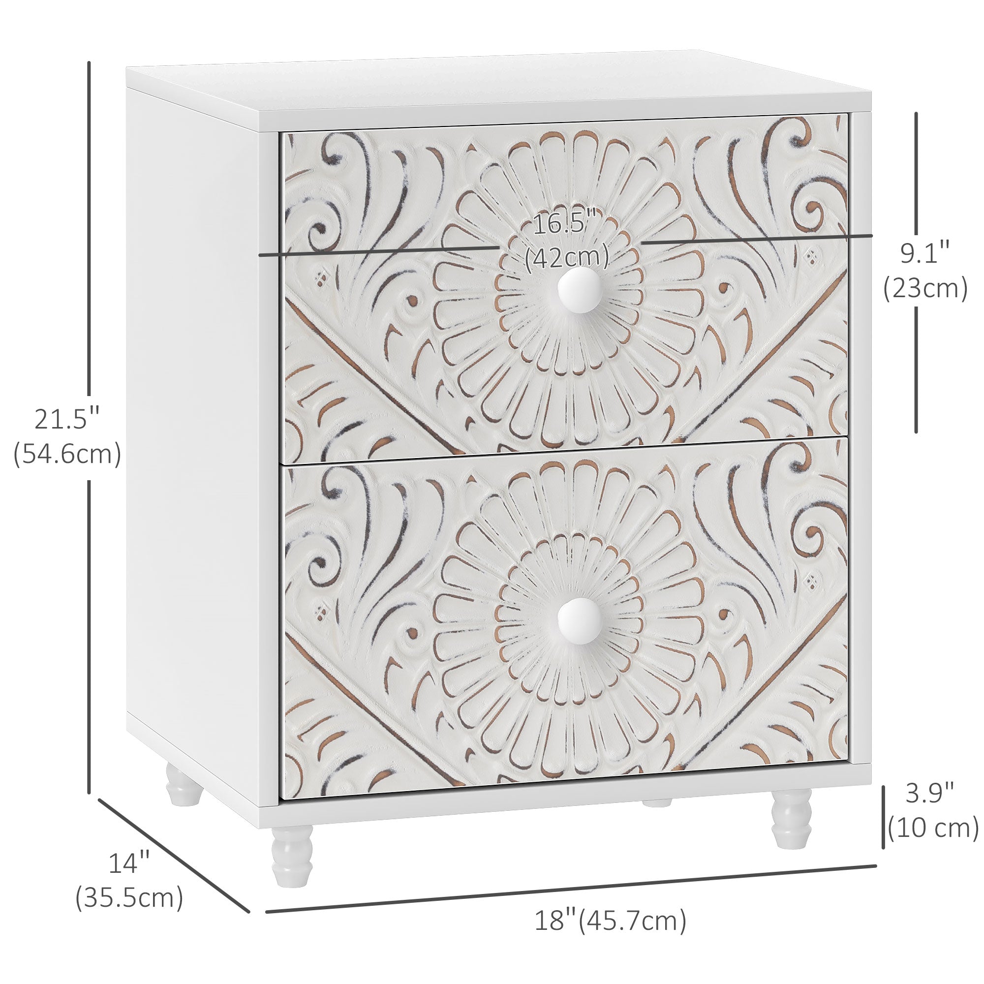 2-Drawer Bedside Table – Mid-Century Style Carved