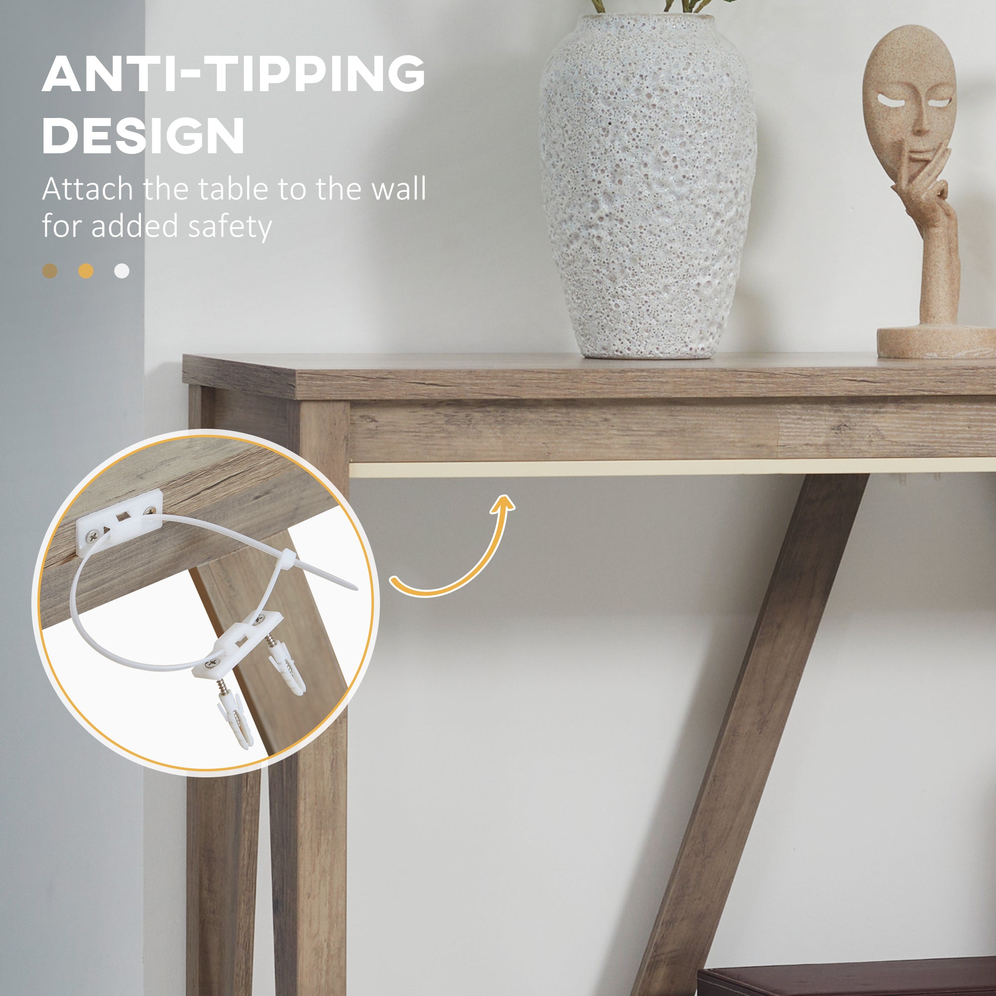 Sturdy and Stable: Made of quality particleboard, this console table offers excellent durability. Its anti-tip hardware enhances safety, and its footrests effectively protect your floor from scratches.