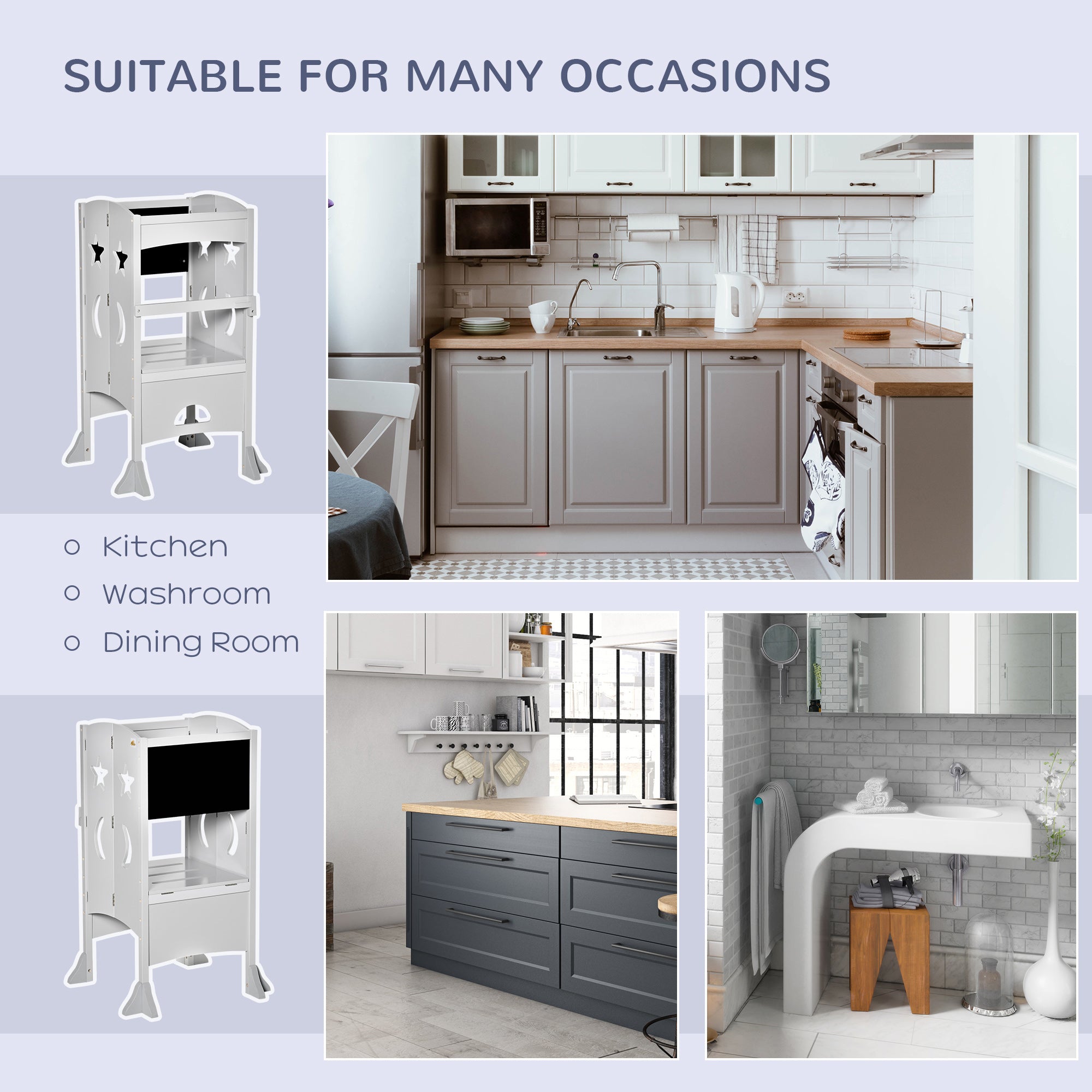 Sturdy and playful design Made from durable and odorless MDF, this step stool features a built-in blackboard on the back, allowing children to draw or write to stimulate their creativity.