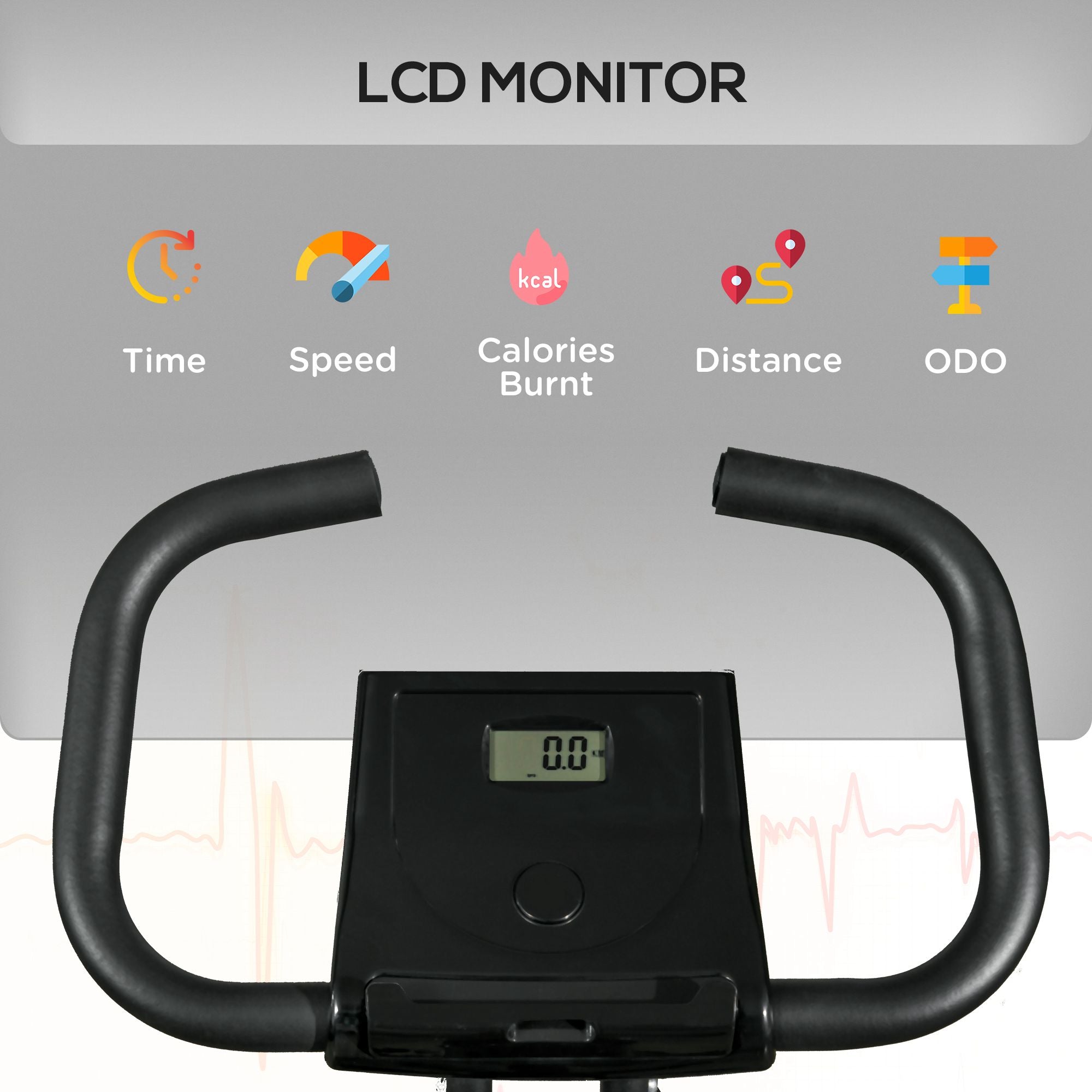 Quality Materials: Made of sturdy steel with ABS and EVA finishes, this bike ensures stability, comfort, and durability. Its 1.6 kg flywheel guarantees smooth and quiet pedaling, perfect for use at home. The integrated LCD screen displays time, speed, distance, calories burned, and odometer, allowing you to accurately track your progress.