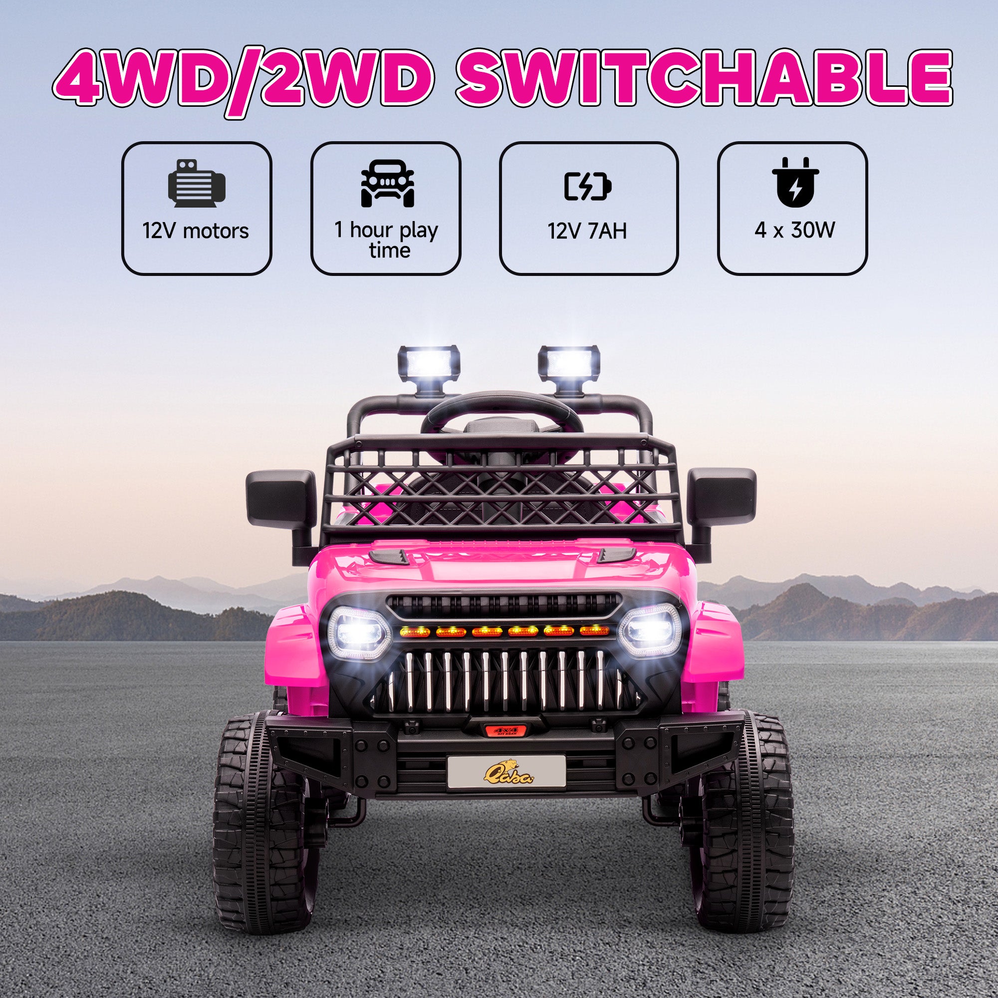 - 12V four-motor system (4x4 or 2x2 mode)